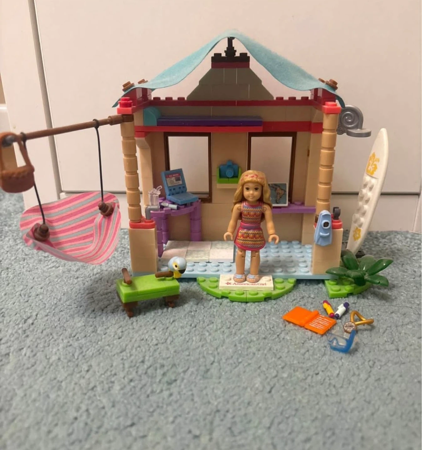 This Mega Construx American Girl set features Lea's Beach Hut. It includes a doll and various accessories for building and play. Recommended for ages 8 and up. Includes instruction manual for building!