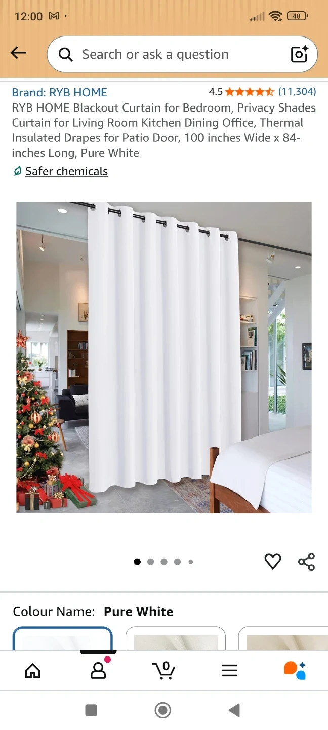 RYB HOME blackout curtain in Pure White. Thermal insulated drapes for privacy. Measures 100 inches wide by 84 inches long. Includes one panel. Rod and curtain panel