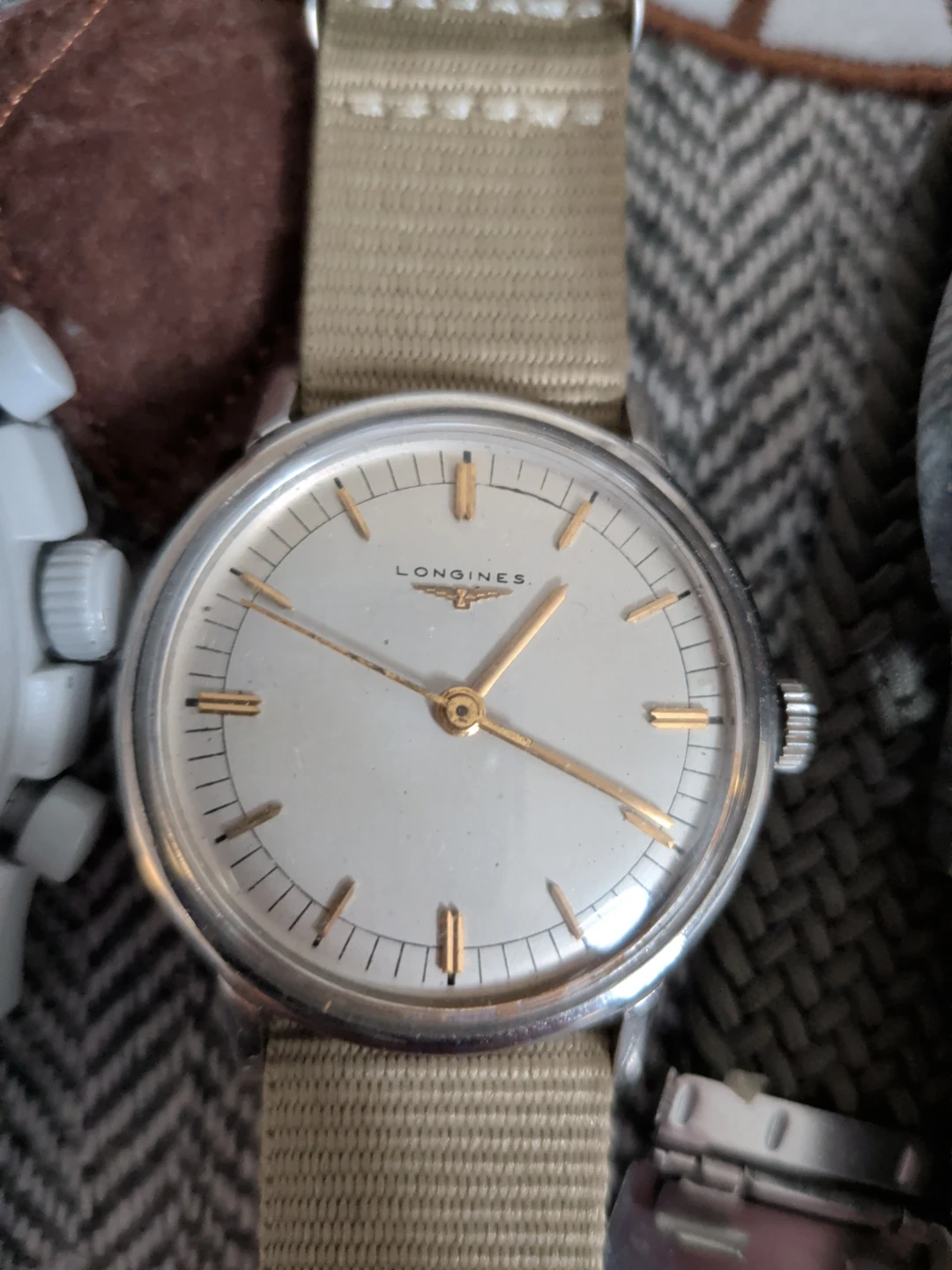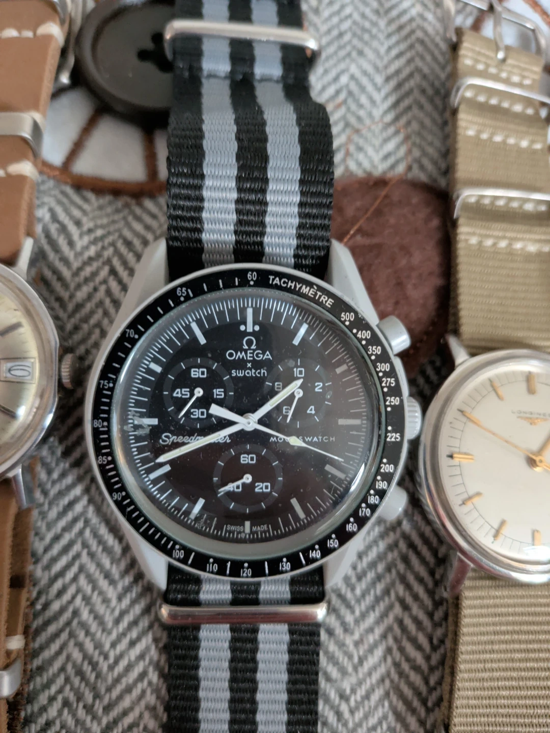 Four distinct watches for collectors. Includes an Omega Speedmaster, a Timex 1960's, a classic 1960's Longines timepiece(not original crystal face), and a vintage Mortima diver watch. This assortment offers a variety of styles and brands for watch enthusiasts. All watches in great shape, bands are brand new.... Not a watch expert, so that's it.