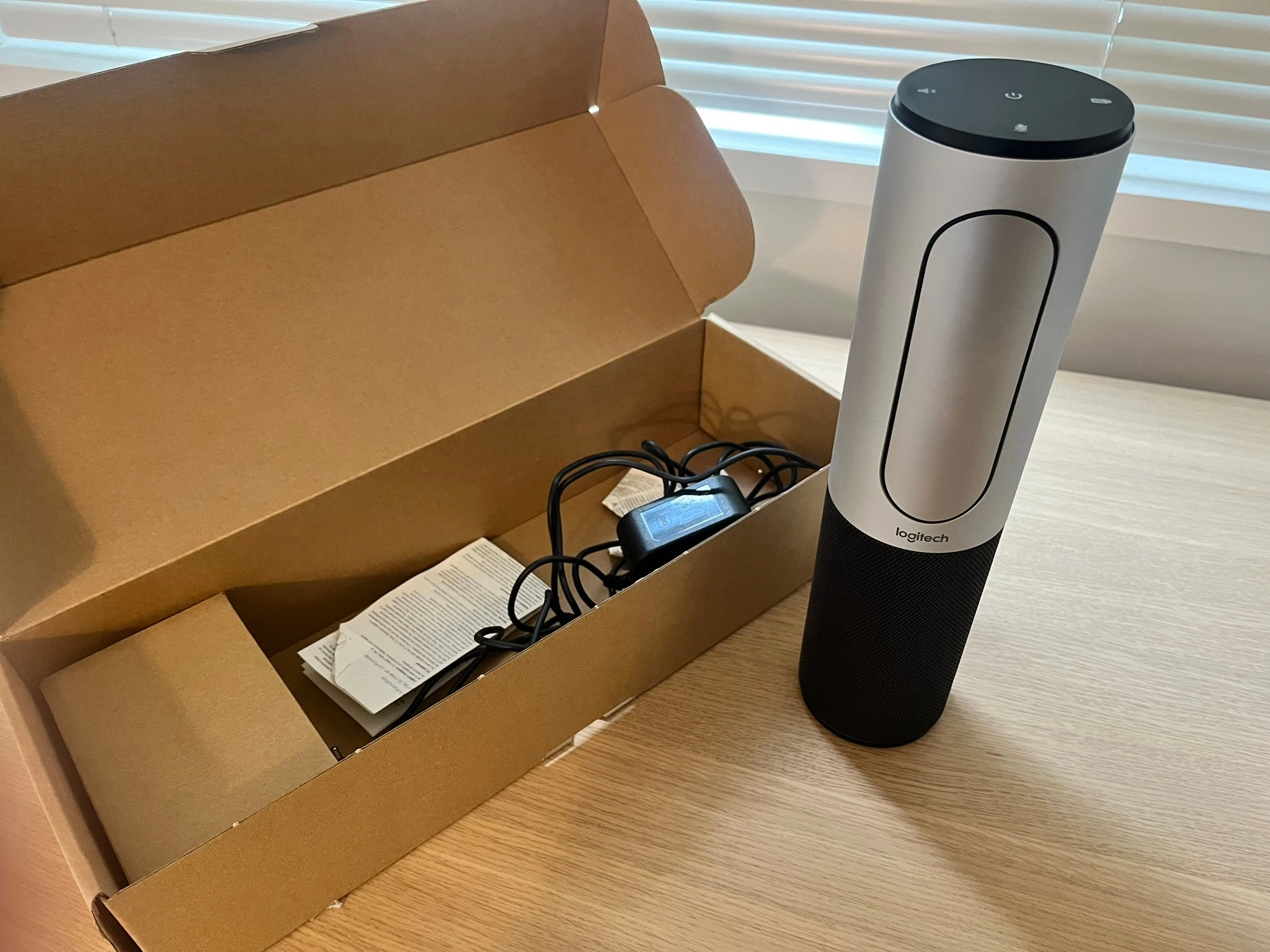 Selling a Logitech Connect portable conference webcam! It's in great condition and comes with the original box. Perfect for video conferencing on the go or in the office. Includes the webcam, remote, power adapter, and instructions. orignal price $ 550+