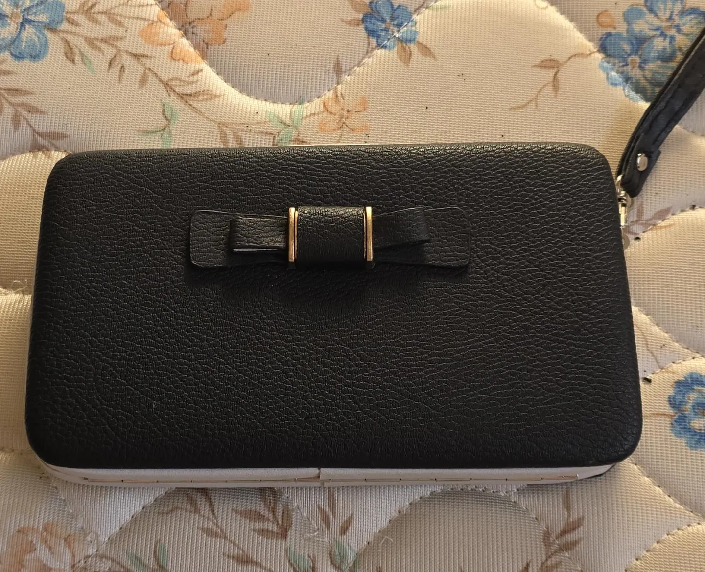 Selling a black wallet clutch featuring a cute bow detail and a handy wrist strap. It's in great condition and perfect for keeping your essentials organized on the go! I take cash and will take E-Transfer but only at my door. I am only available for pick up from 9:30 a.m. to 6:00 p.m.