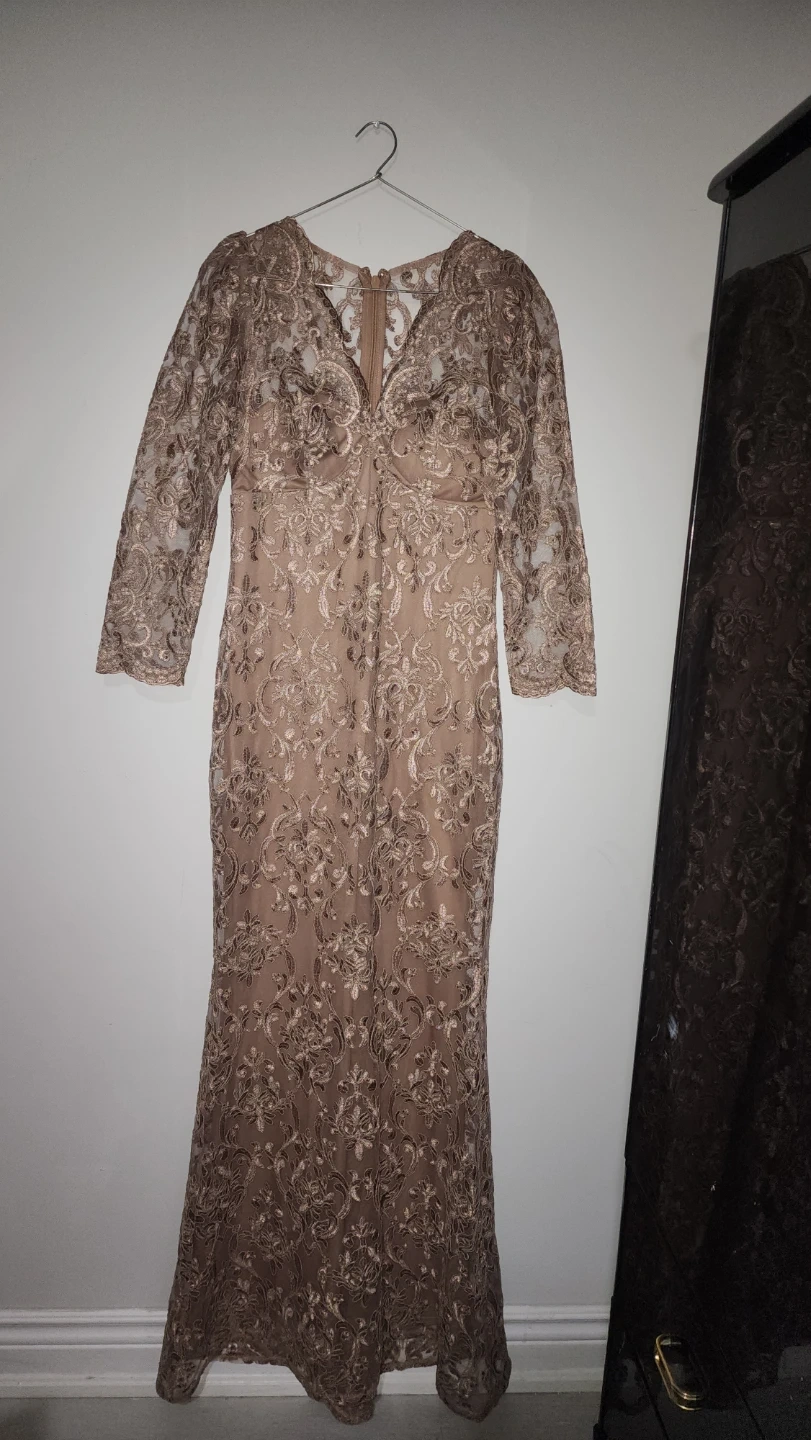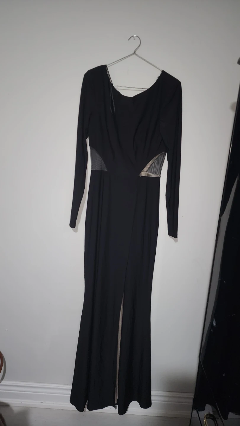 Various women's dresses are available. Styles include sequined maxi dresses, satin cocktail dresses, and a long-sleeved black dress with mesh details. Materials and sizes vary by dress.