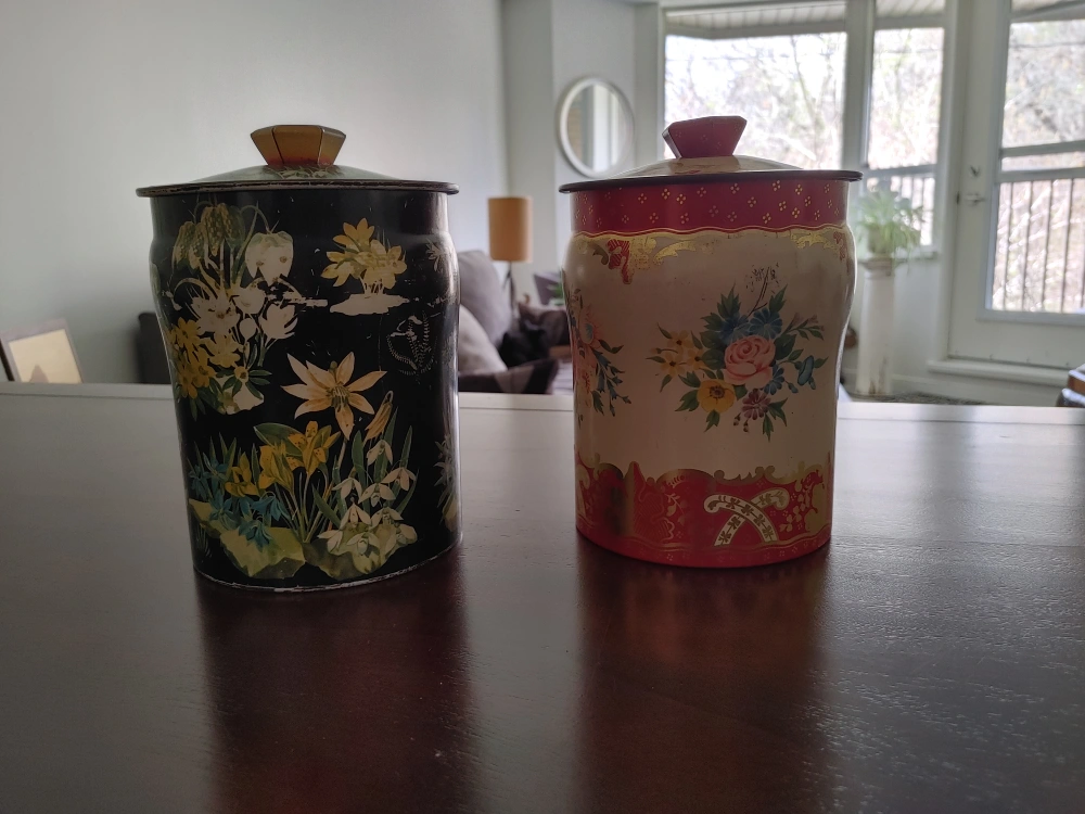 Vintage Floral Decorated Tin Canisters