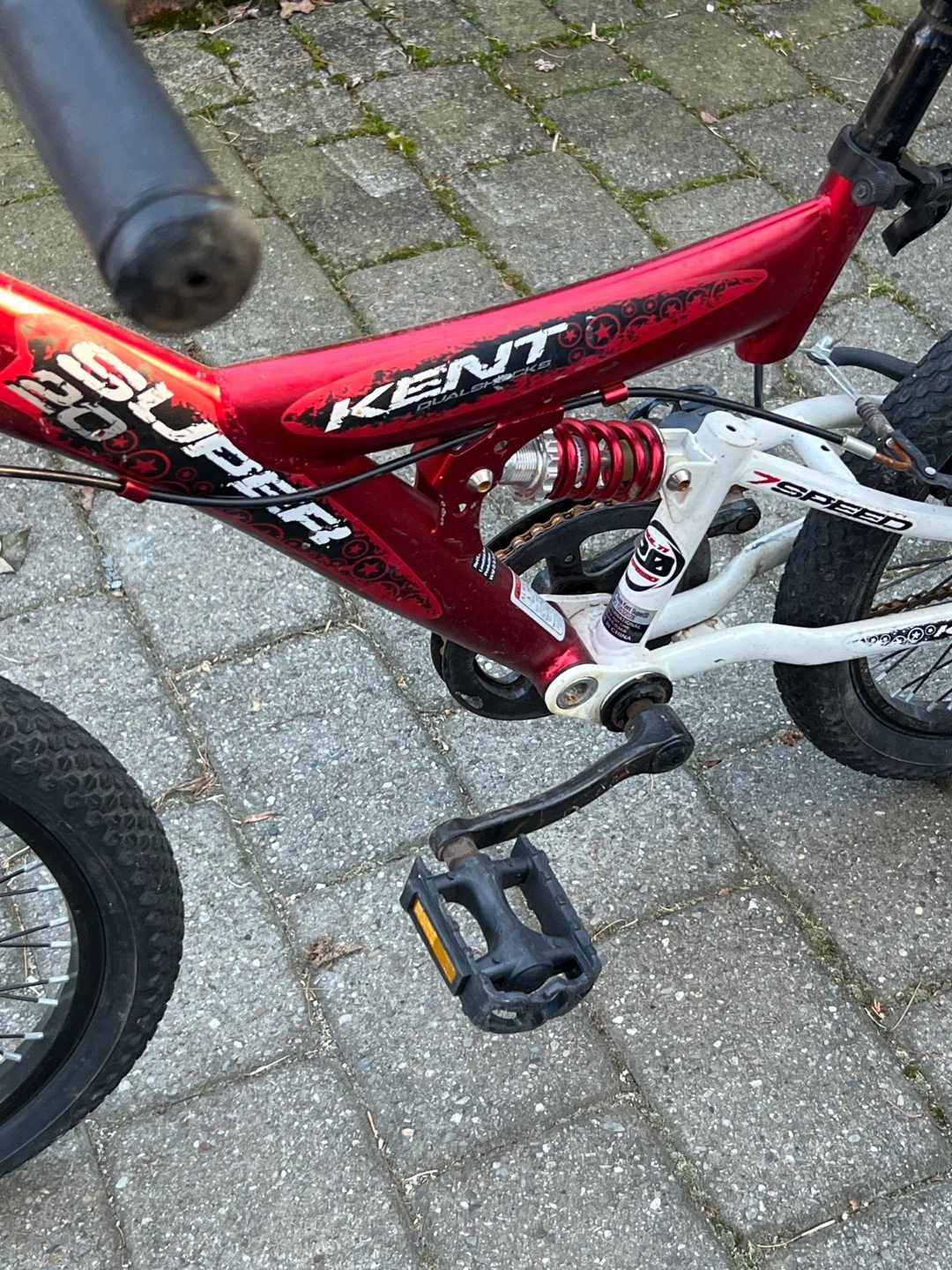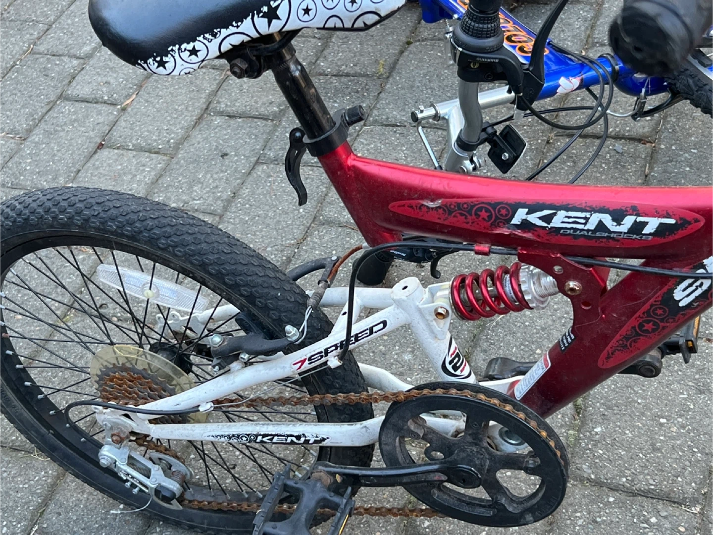 Buy & SellKent Dualshox 7 Speed Mountain BikeKent Dualshox 7 Speed Mountain Bike$150This Kent mountain bike has a red and white frame with dual shox suspension. It's a 7-speed bike with knobby tires. It's ready for adventure!ConditionGoodWHERE TO MEETIHOPView MapSELLERverifiedAngelaManhasset600 reviews0 chats·0 favorites·4 viewsSEND CHAT TO SELLERHi Angela! I’m interested in your listing.Hi Angela! I’m interested in your listing.Get the Karrot app to chatSign In to chat