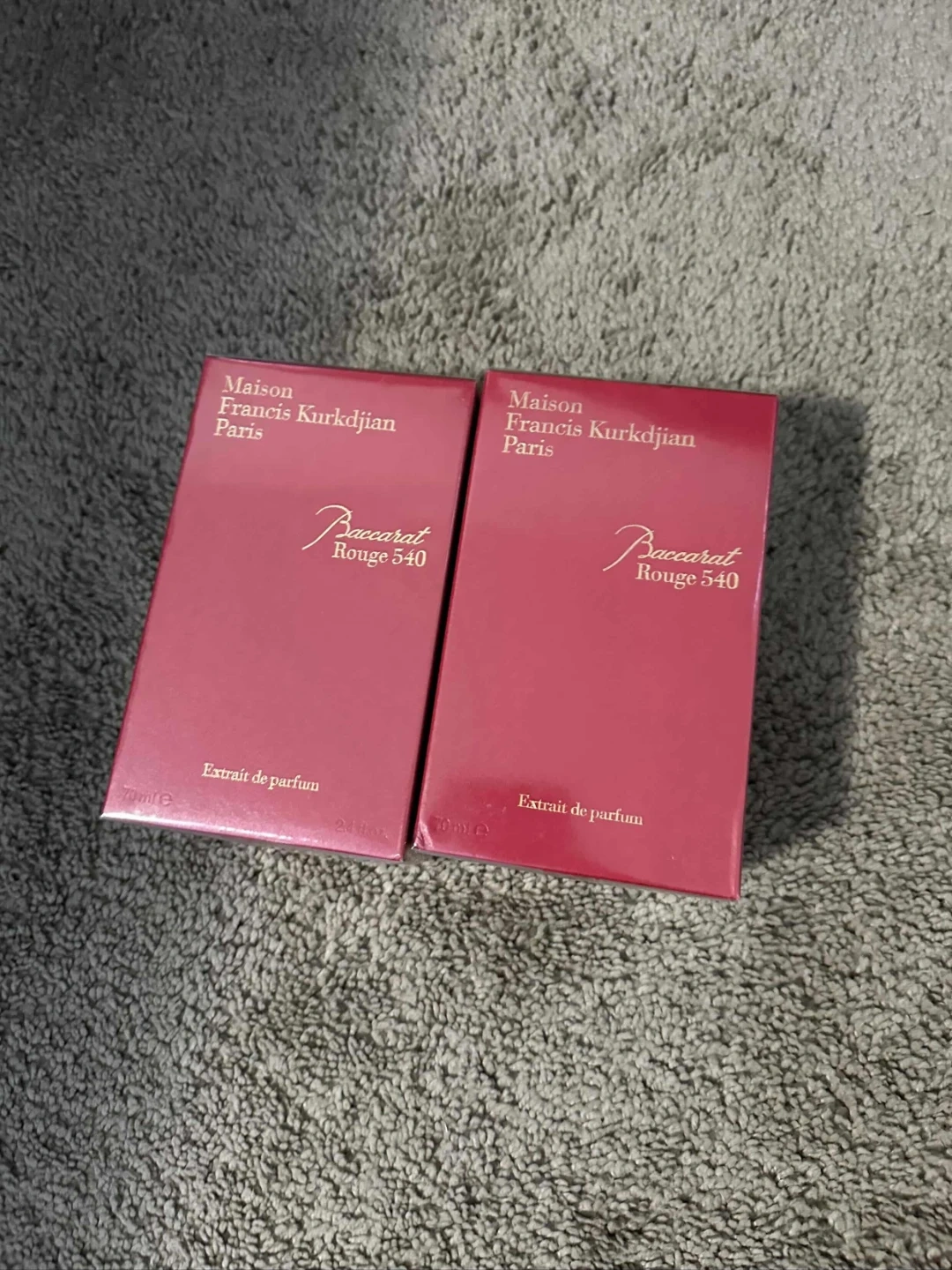 Two bottles of Maison Francis Kurkdjian Baccarat Rouge 540 Extrait de Parfum. Each bottle is 75mL. Extrait de parfum concentration. Each 150.