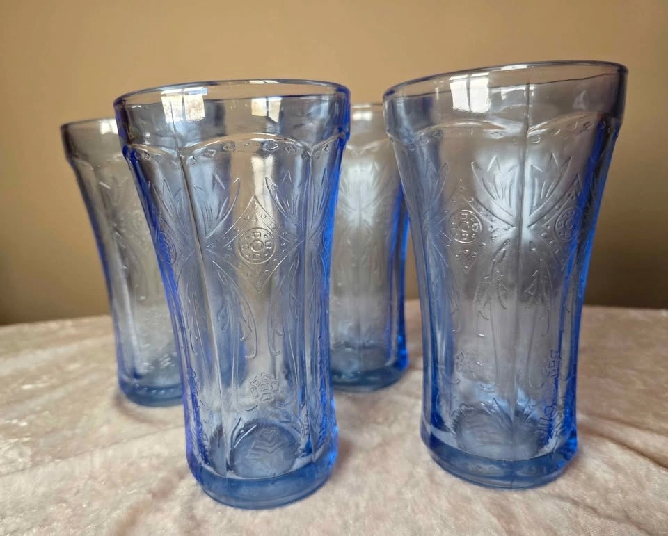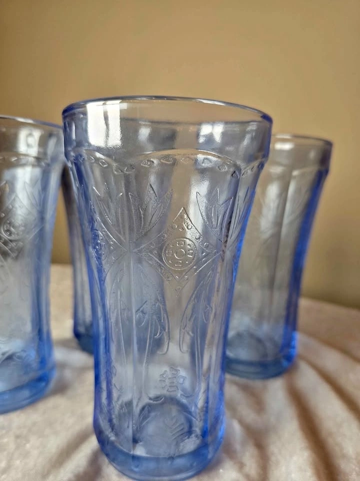 4 Vintage Indiana Glass Recollection Blue Tumblers (Set of 4)