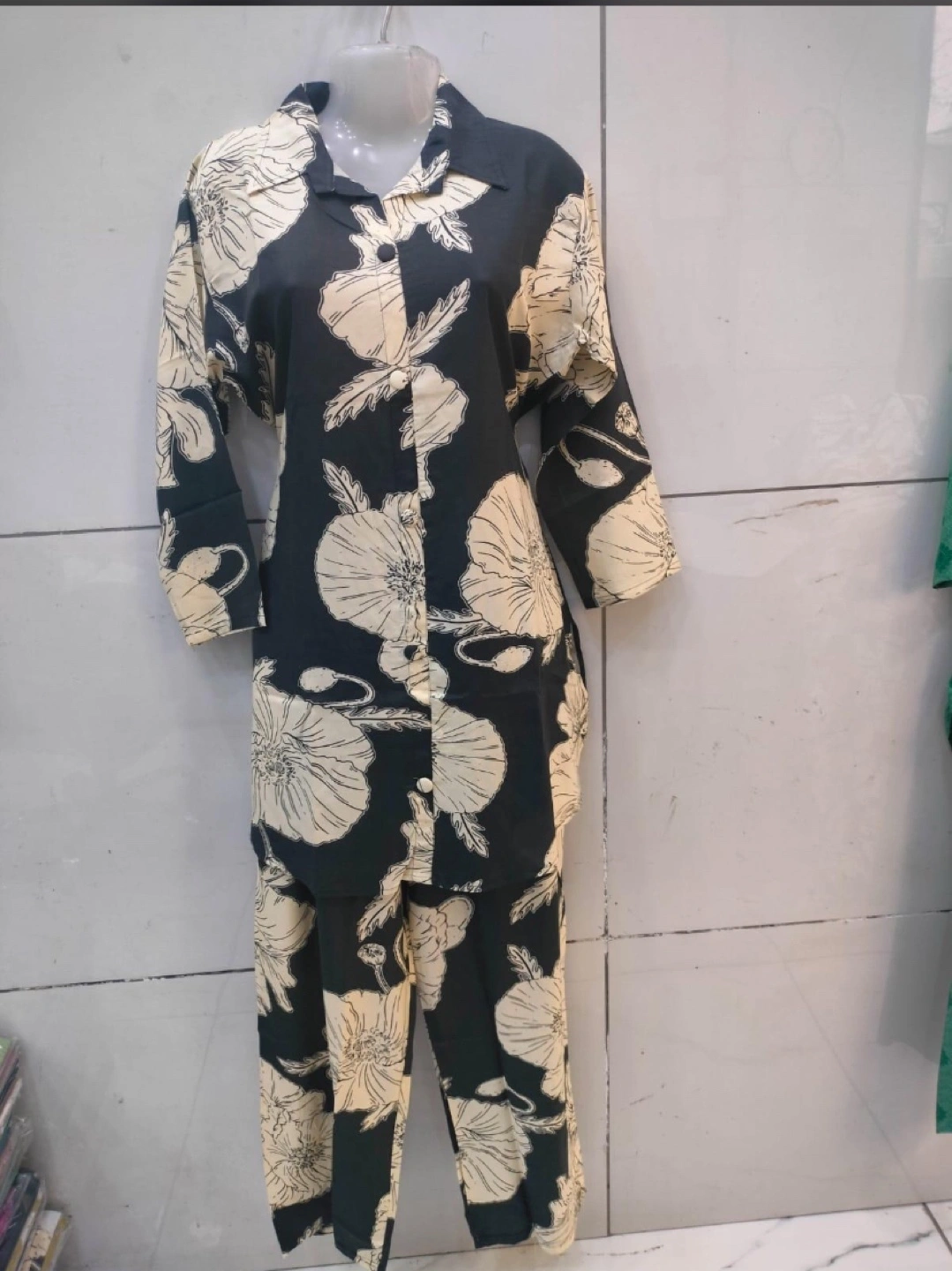 Cute cord set with a floral print design! The available sizes are XL and XXL. Perfect for a casual day out or lounging at home