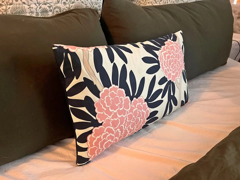 Girly floral lumbar decorative accent throw pillow pink navy lig