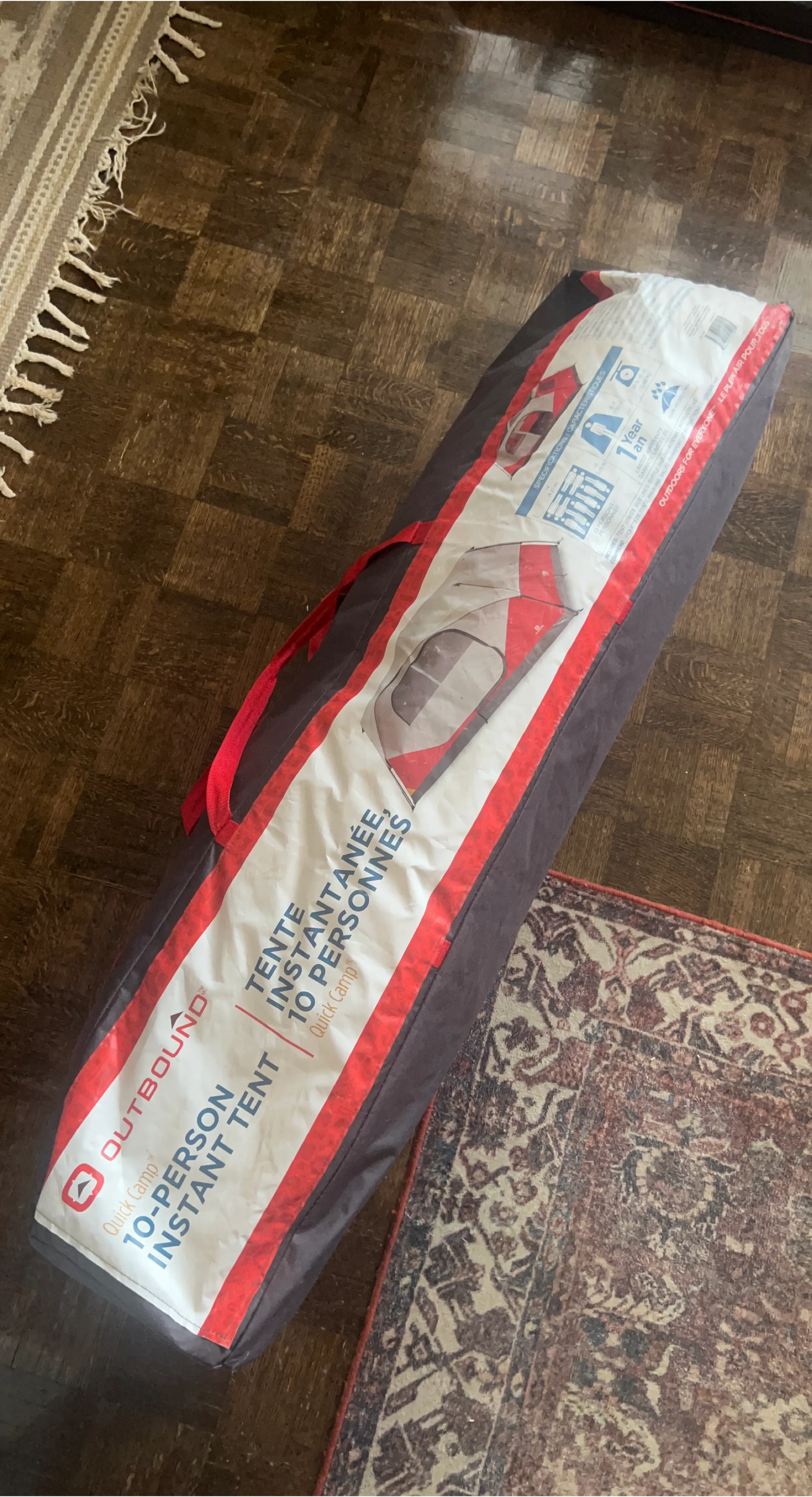This Outbound Quick Camp instant tent is for 10 people. It includes tent stakes and guy lines. It's ready for your next outdoor adventure!