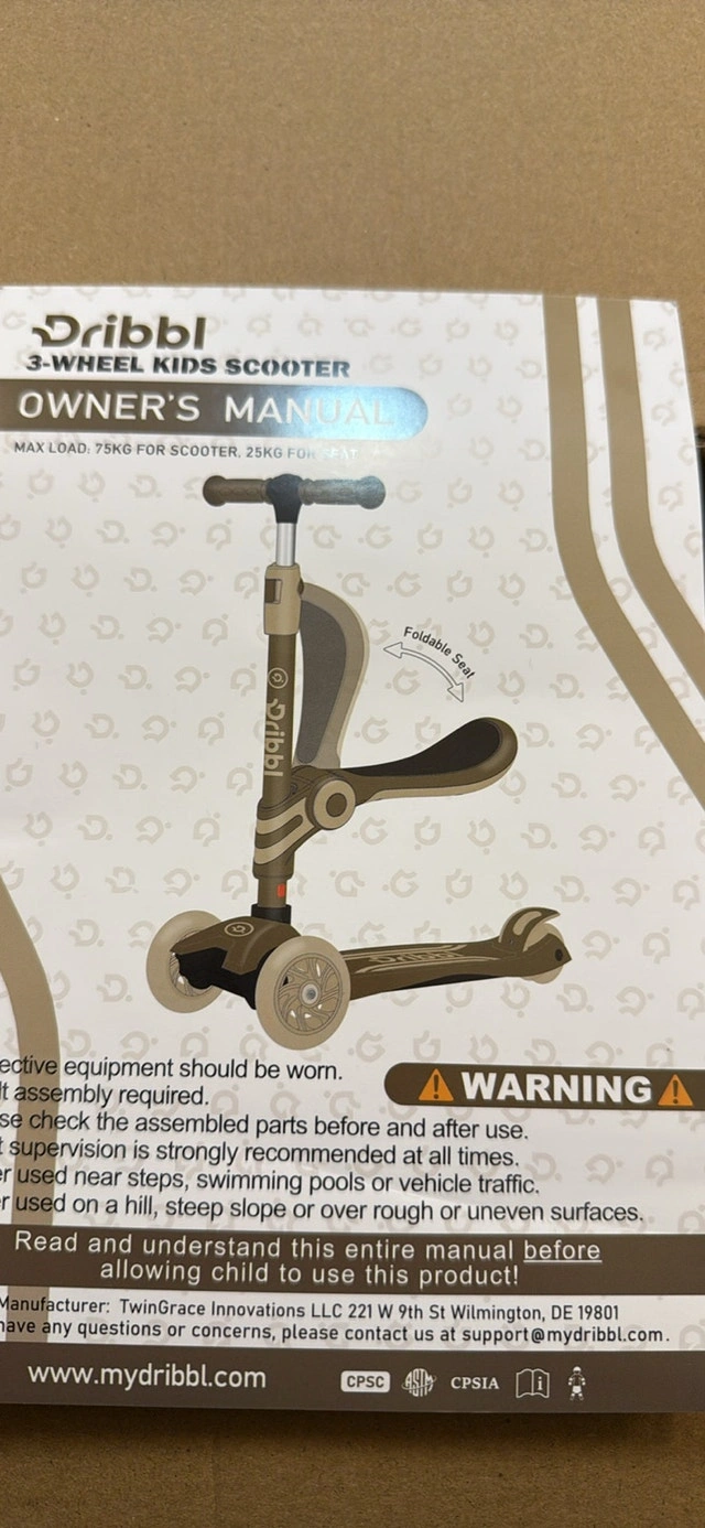 Selling a like-new Dribbl 3-wheel kids scooter, perfect for young children learning to balance and coordinate. This scooter features a unique design that can be converted from a seated scooter to a stand-up scooter as your child grows. The LED light-up wheels add an element of fun and visibility during playtime. The scooter is in excellent condition and has been gently used. Key features include: - Convertible design: Easily switches between seated and stand-up modes. - LED light-up wheels: Provides added visibility and fun. - Three-wheel design: Offers stability and balance for young riders. - Adjustable handlebar: Accommodates children of different heights. - Foldable seat: Easy conversion. Asking $65. If the ad is still up, the scooter is still available.