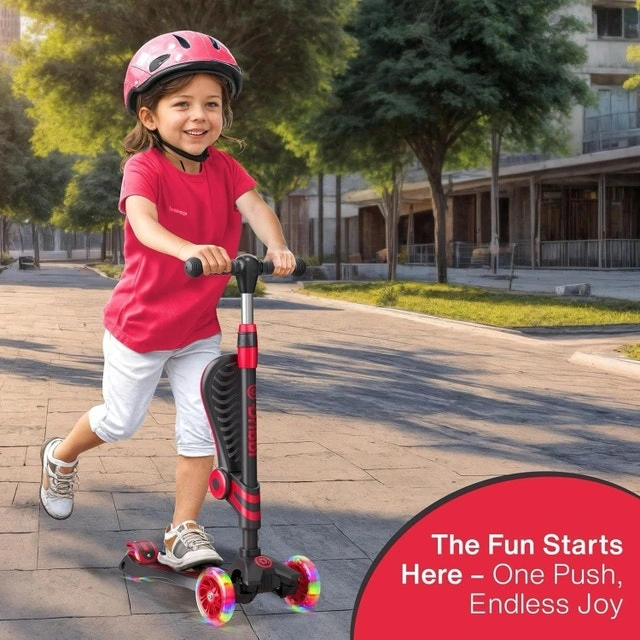 Selling a like-new Dribbl 3-wheel kids scooter, perfect for young children learning to balance and coordinate. This scooter features a unique design that can be converted from a seated scooter to a stand-up scooter as your child grows. The LED light-up wheels add an element of fun and visibility during playtime. The scooter is in excellent condition and has been gently used. Key features include: - Convertible design: Easily switches between seated and stand-up modes. - LED light-up wheels: Provides added visibility and fun. - Three-wheel design: Offers stability and balance for young riders. - Adjustable handlebar: Accommodates children of different heights. - Foldable seat: Easy conversion. Asking $65. If the ad is still up, the scooter is still available.