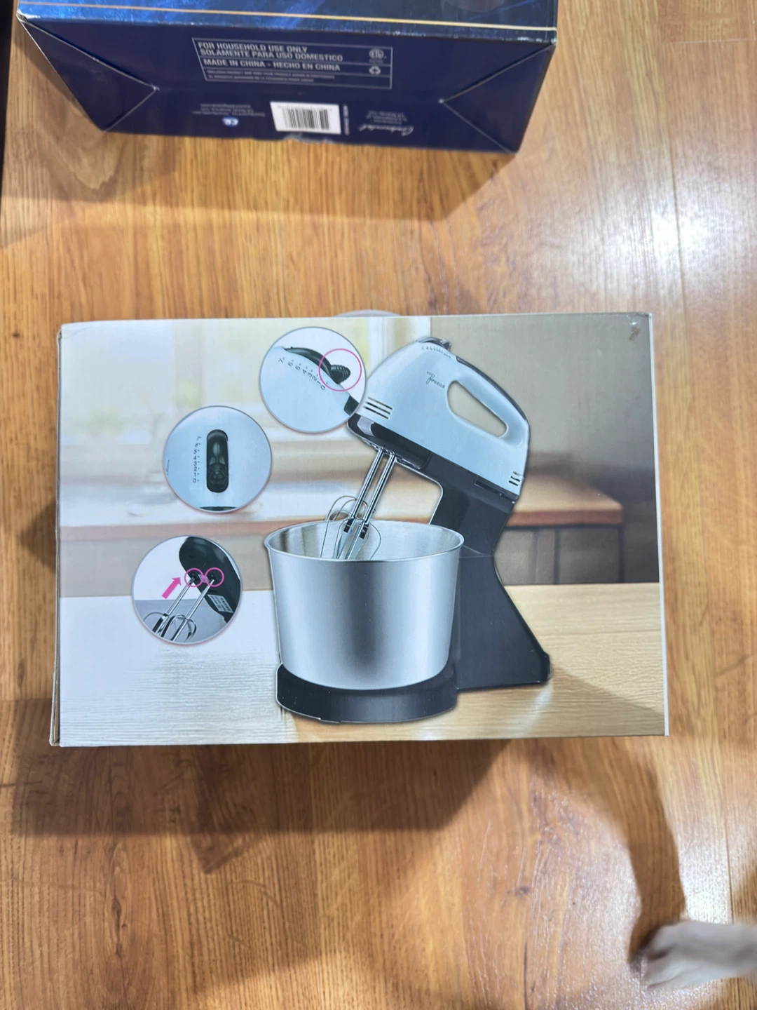 I'm selling a FPEKOR 7-speed hand mixer. It comes with a bowl and beaters. It's made for household use and is made in China. The box is included