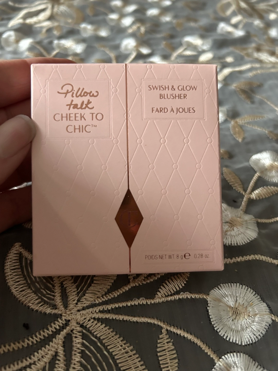 Lightly used Charlotte Tilbury Pillow Talk Cheek to Chic blush. Compact blush in a beautiful rose-gold shade. Includes a puff. Perfect for adding a touch of colour to your cheeks.