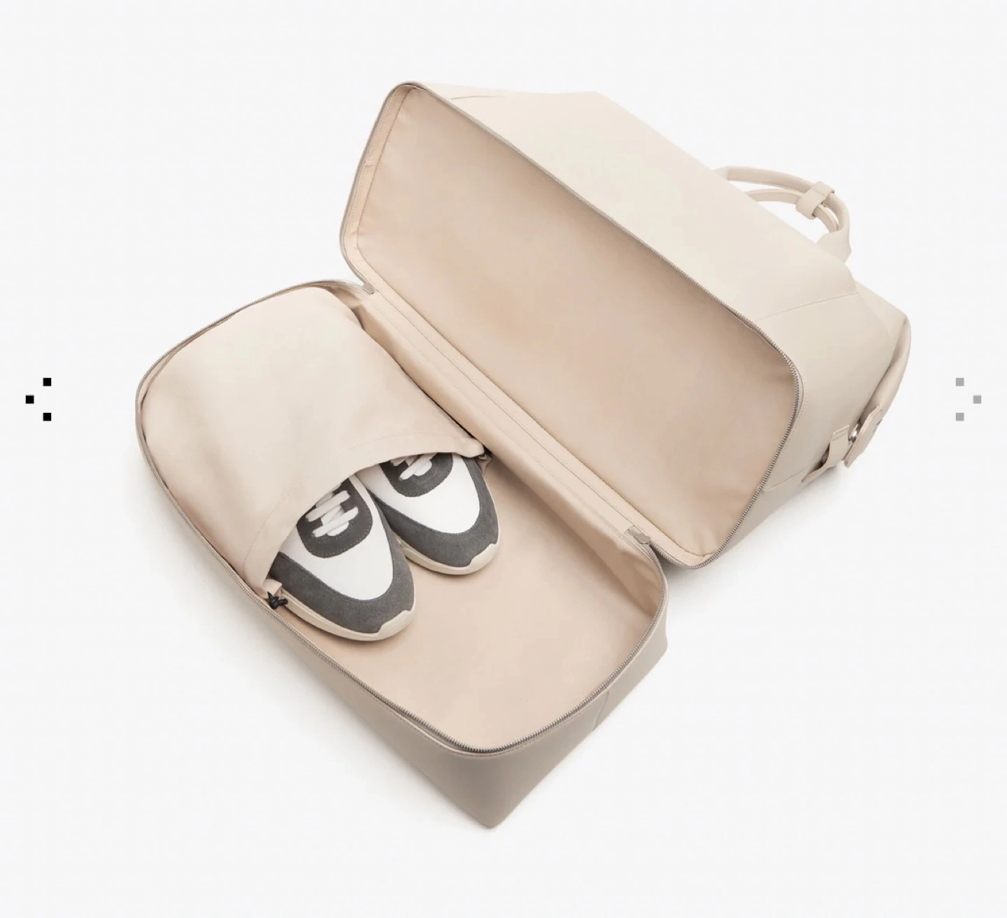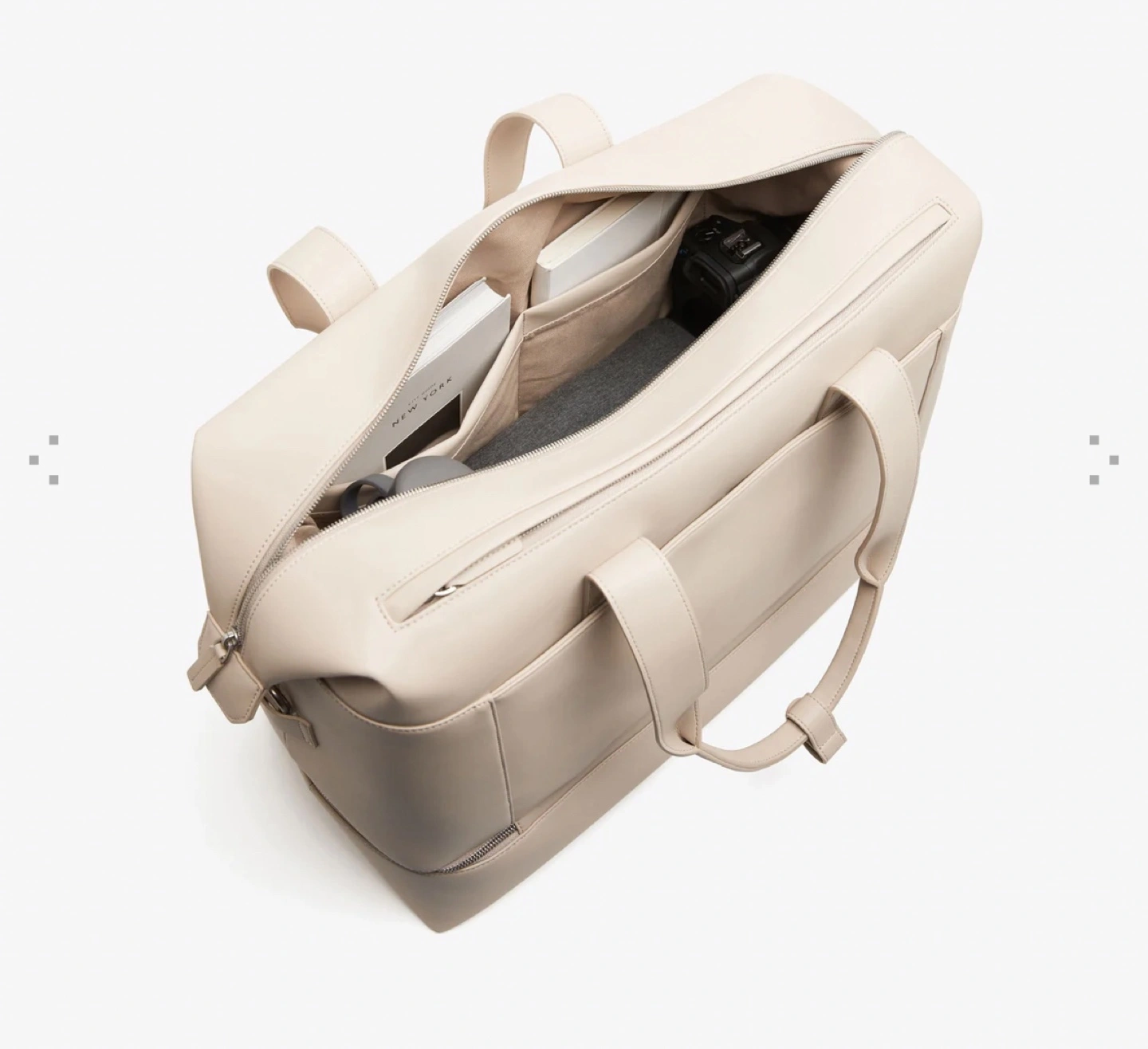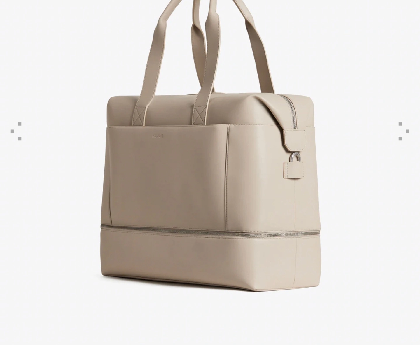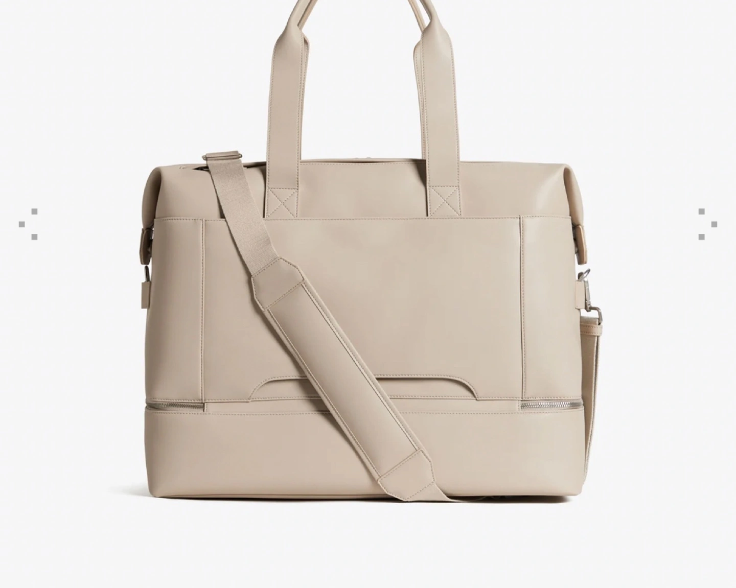 Stylish and functional weekender bag. Features multiple compartments and pockets. Durable construction. Perfect for travel.
