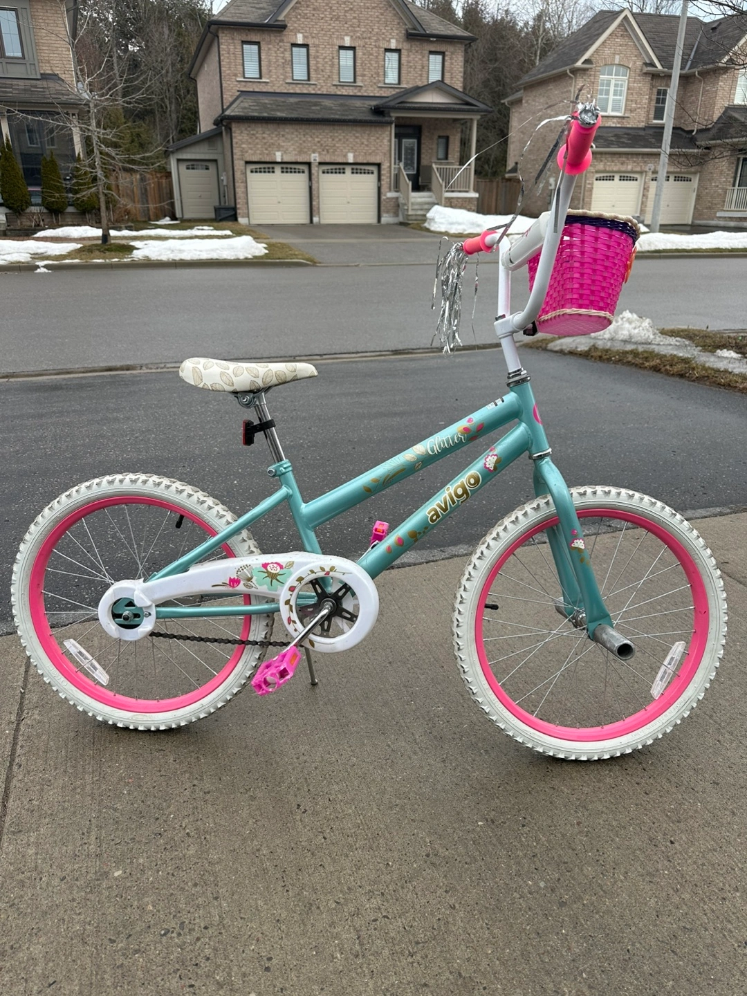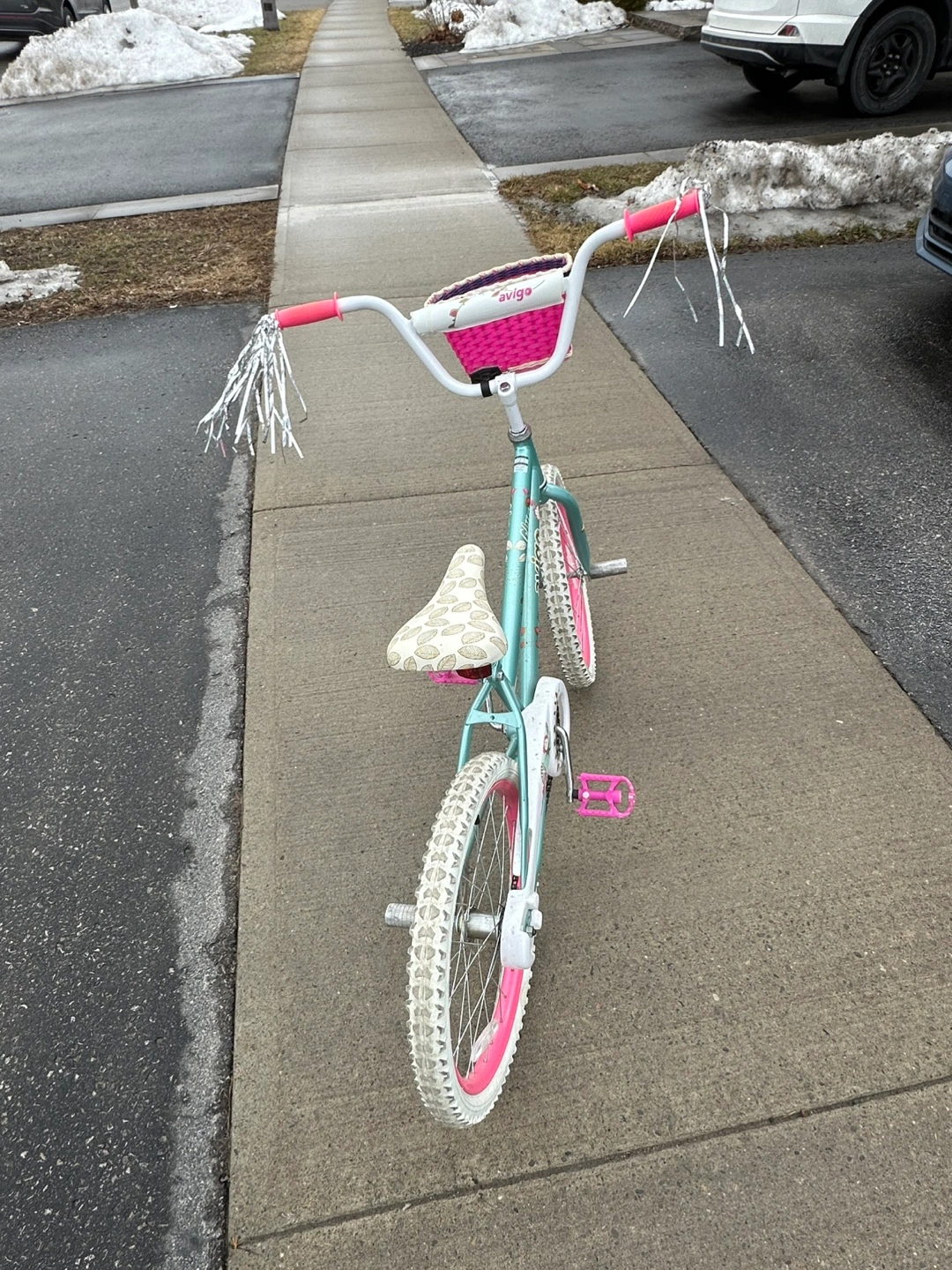 Buy & SellGirls' Avigo 20-inch BikeGirls' Avigo 20-inch Bike$90Used girls' bicycle. Teal and pink colour scheme. Features a pink basket and streamers on the handlebars. White wall tires. Good condition.WHERE TO MEETHwy 2 and TownlineView MapSELLERverifiedDominikaCourtice782 reviews0 chats·0 favorites·11 viewsSEND CHAT TO SELLERHi Dominika! I’m interested in your listing.Hi Dominika! I’m interested in your listing.Get the Karrot app to chatSign In to chat