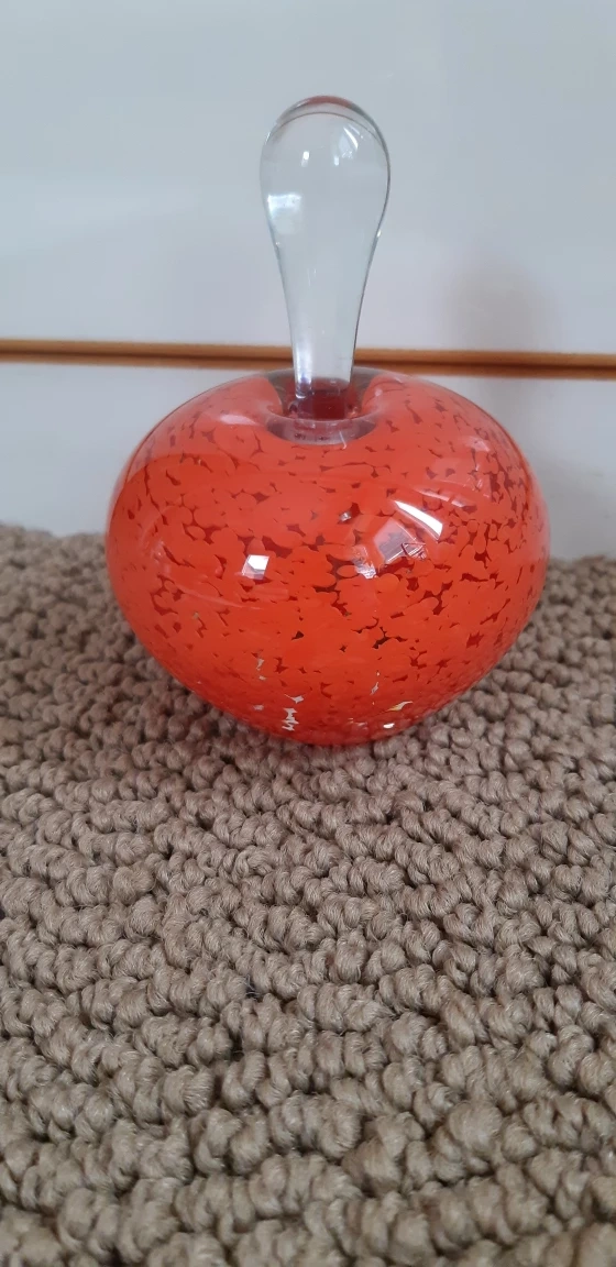 840Beautiful perfume bottle with stopper Gorgeous speckled orange glass Great condition, no cracks or chips