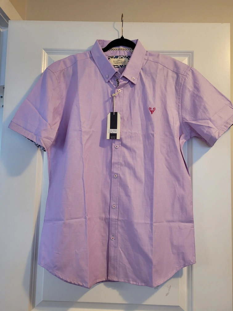 Scott Ellis Men's Lavender Short Sleeve Shirt - Size XL