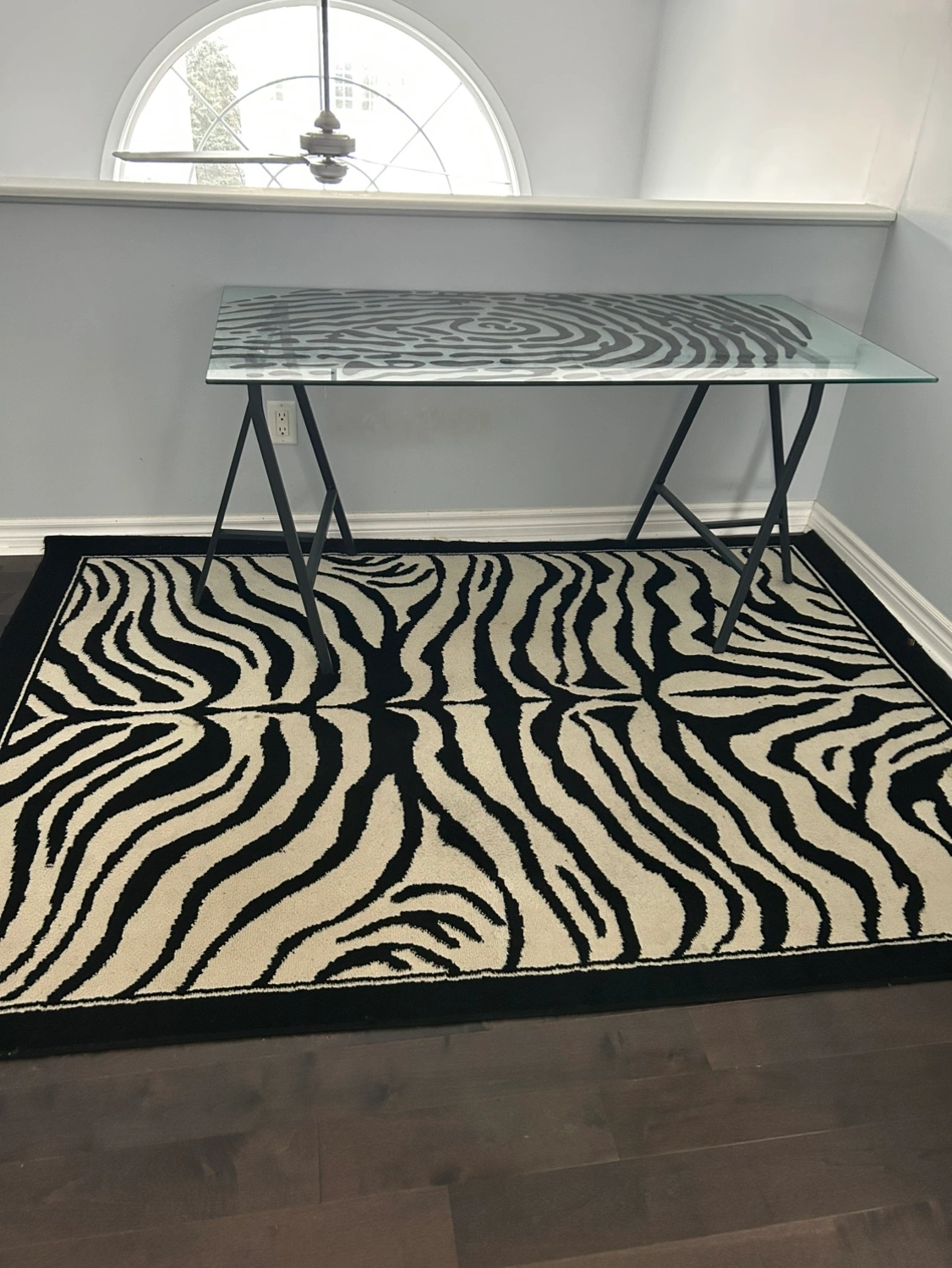 Buy & SellTable and Zebra Print Area RugTable and Zebra Print Area Rug$40Black and white zebra print rug. Good condition. Suitable for living room or bedroom. Measures approximately 5' x 7'.WHERE TO MEETCheck LocationView MapSELLERManalBells Corners676 reviews1 chats·0 favorites·19 views