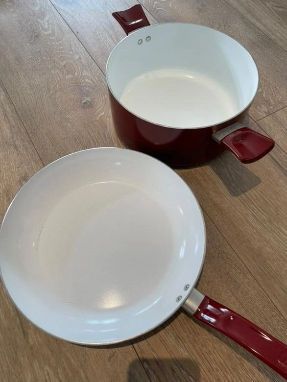🩵 T-fal Red Ceramic Cookware Set - Pot and Frying Pan
