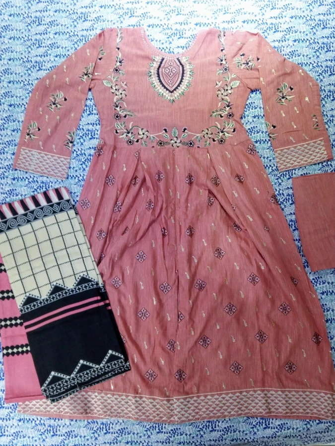 Beautiful embroidered Salmon Pink Shalwar Kameez