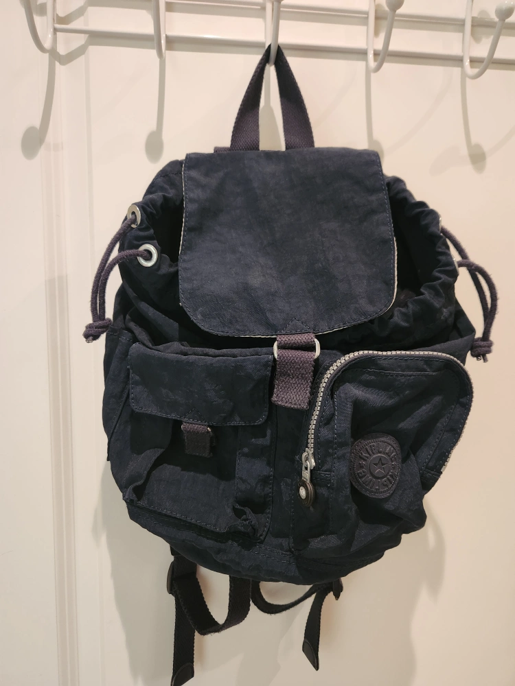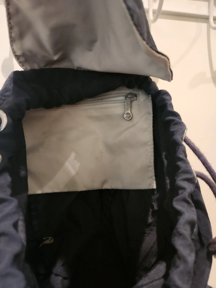 189Small navy blue drawstring backpack. Multiple pockets and compartments. Perfect for everyday use or travel. feel free to check my other listing for bundle discount.