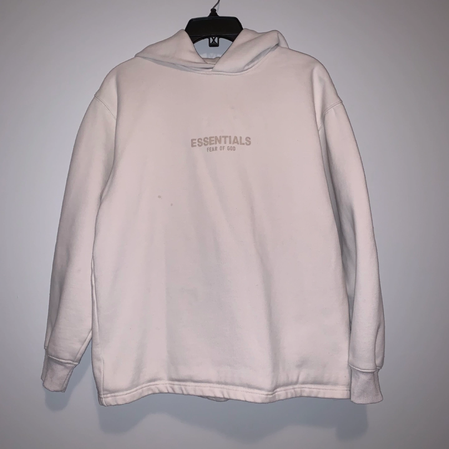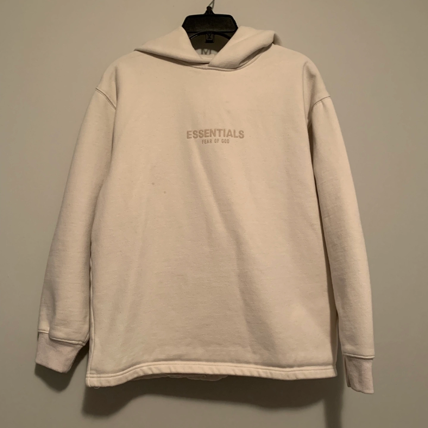 Cream-colored hoodie. Bought from a reseller - it’s either a knock off or a manufacturer reject.