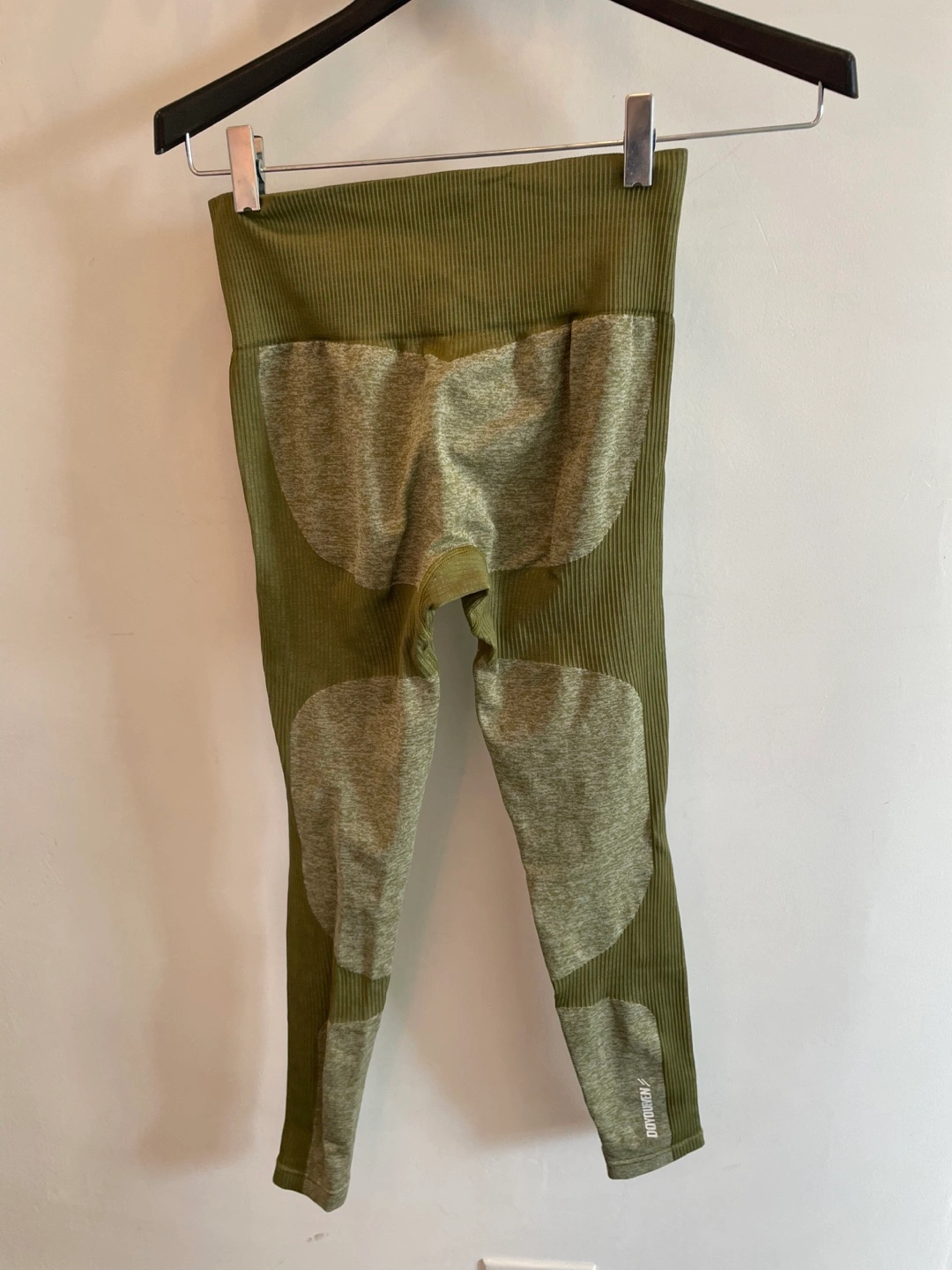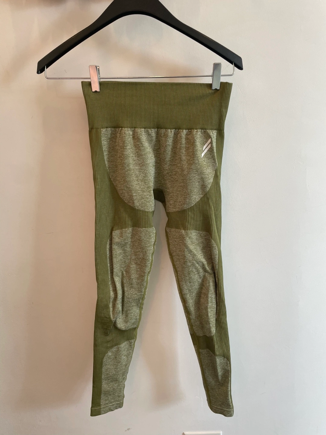 Do You Even is an Australian athletic wear company, high quality, similar in design to Gym Shark. Olive green seamless leggings. High-waisted design. Size small with stretch, thicker material, not see through and won’t move around while working out. Excellent for workouts or casual wear. Comfortable compression and lift with ribbed texture on the waist band.