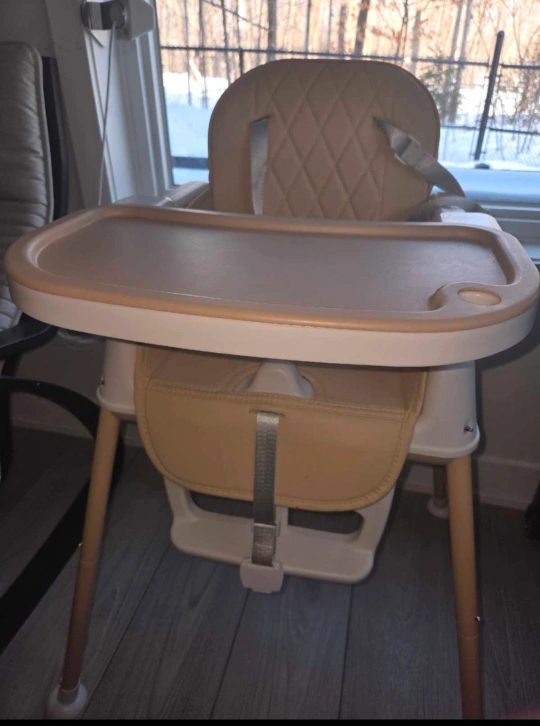 high chair for babies and toddlers. adjustable table and the top of the table is like a lid which can be removed and washed