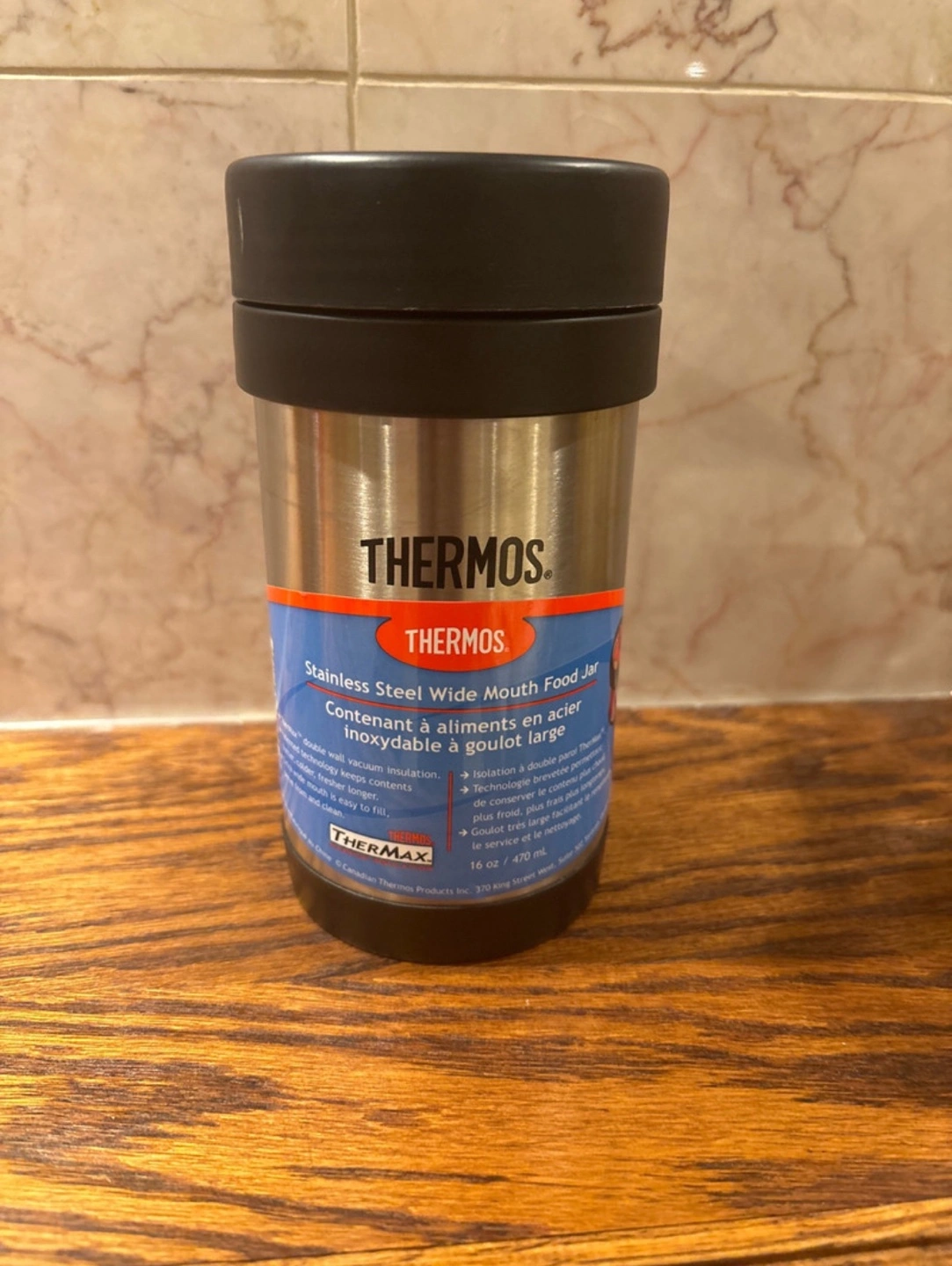 Thermos brand food jar. Keeps food hot or cold. Double wall vacuum insulation. Easy to clean. Wide mouth for easy filling.