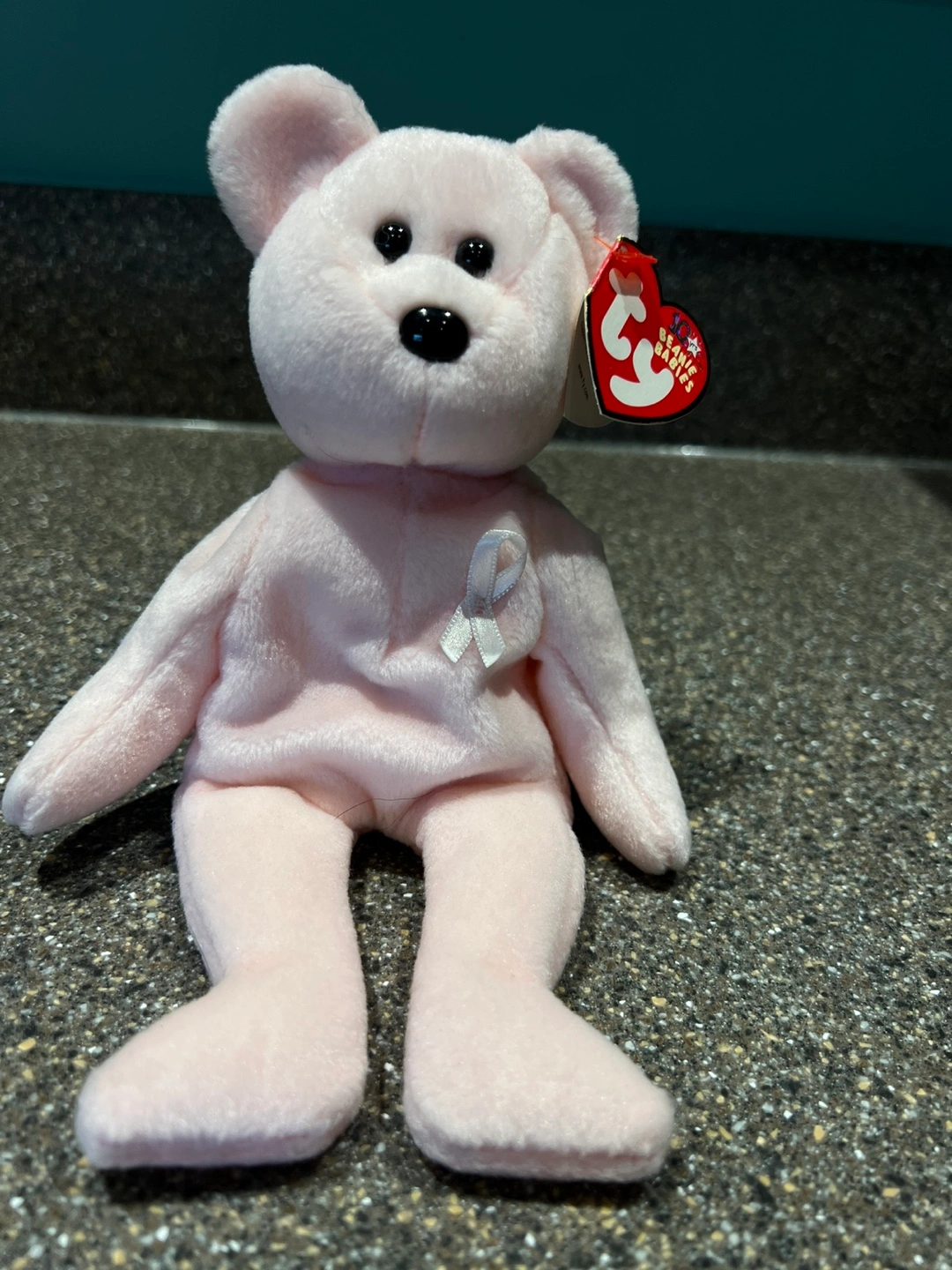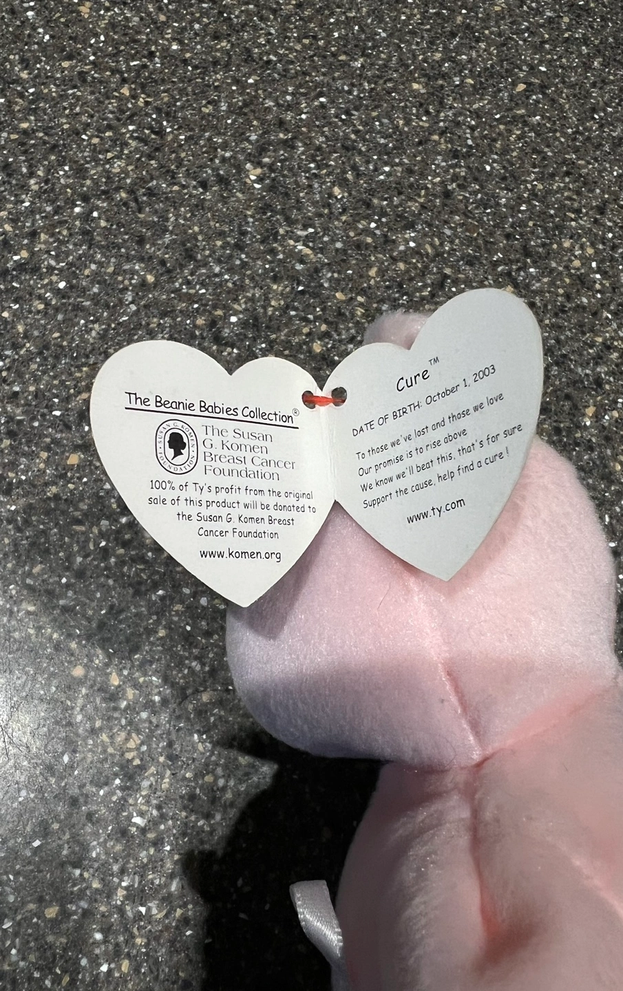 NWT Ty Vintage 2003 Beanie Babies Cure Breast Cancer Bear 10 Year Anniversary Plush