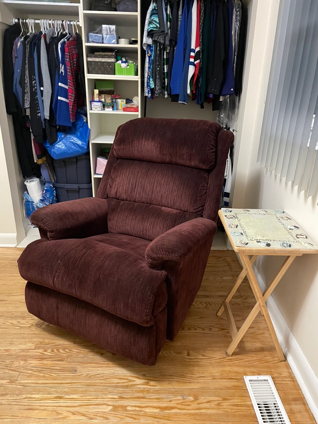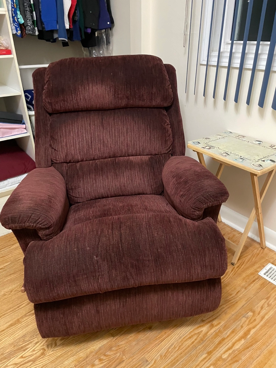 $200 Very Heavy comfortable lazy boy chair rocker and lays back, must see. Great Price, cost over $1000 when purchased a few years ago, moving to smaller place with no room for it. I would have kept it otherwise
