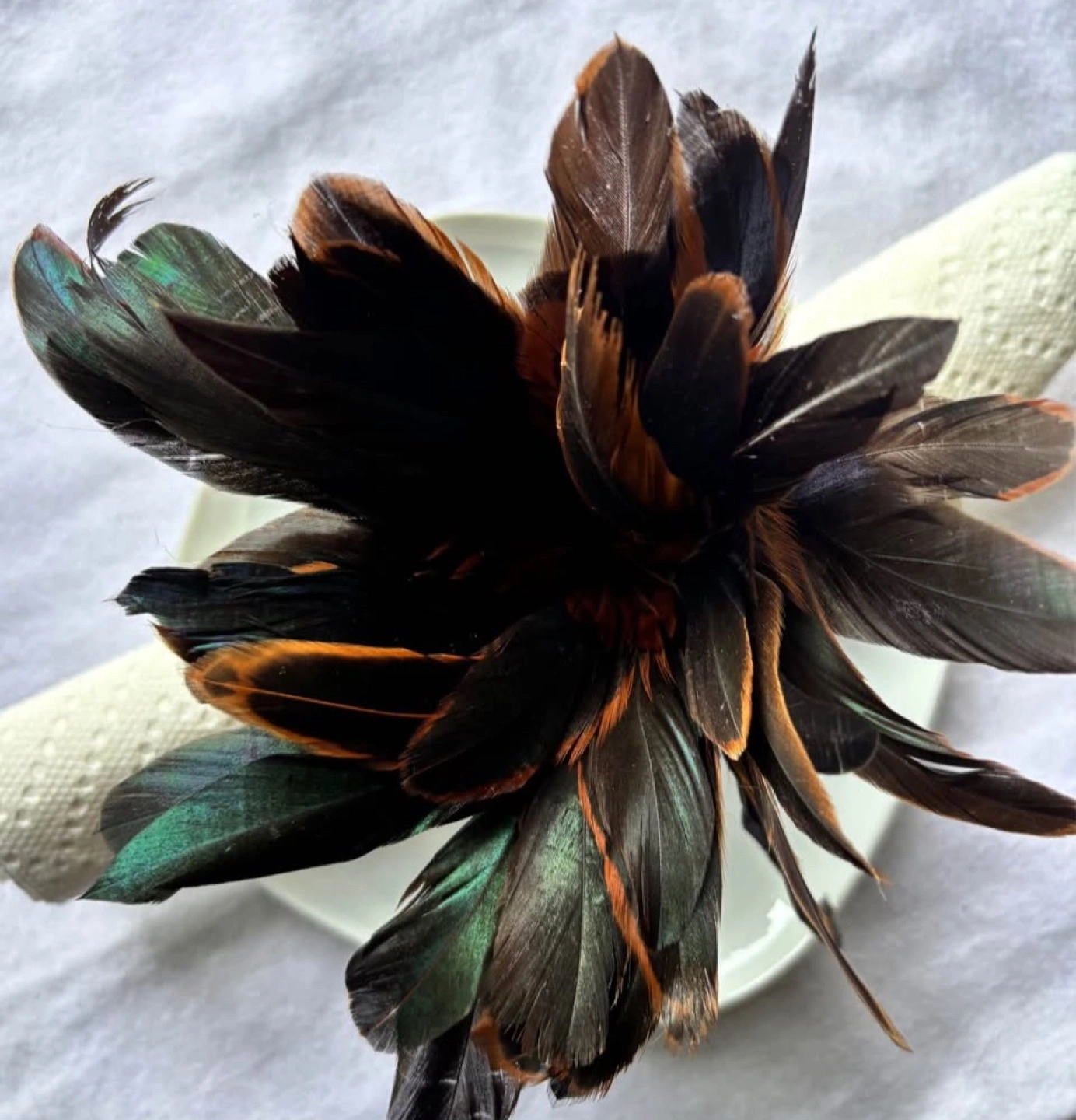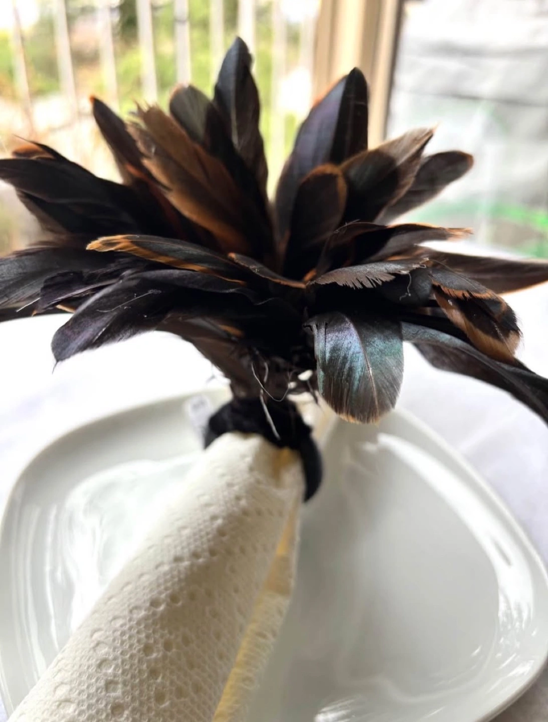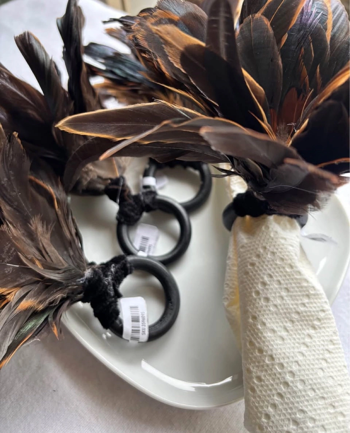 Decorative Feather Napkin Rings, Set of 4, New with Tag