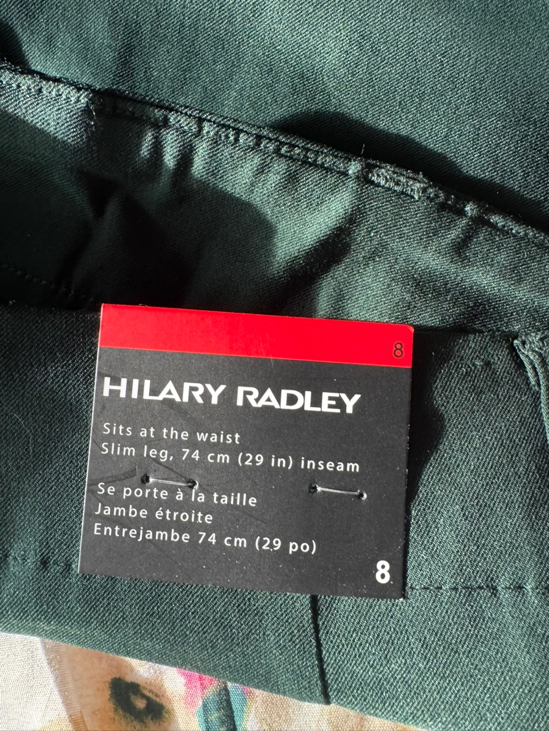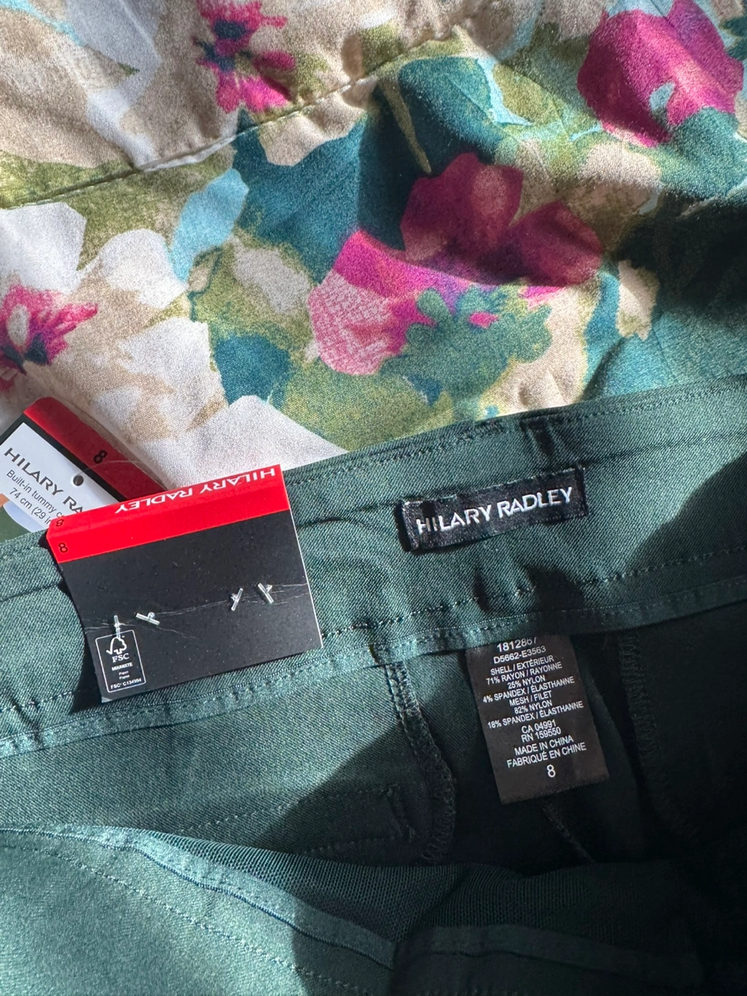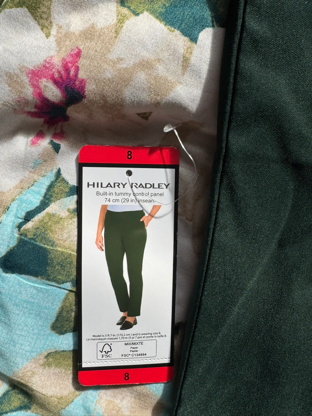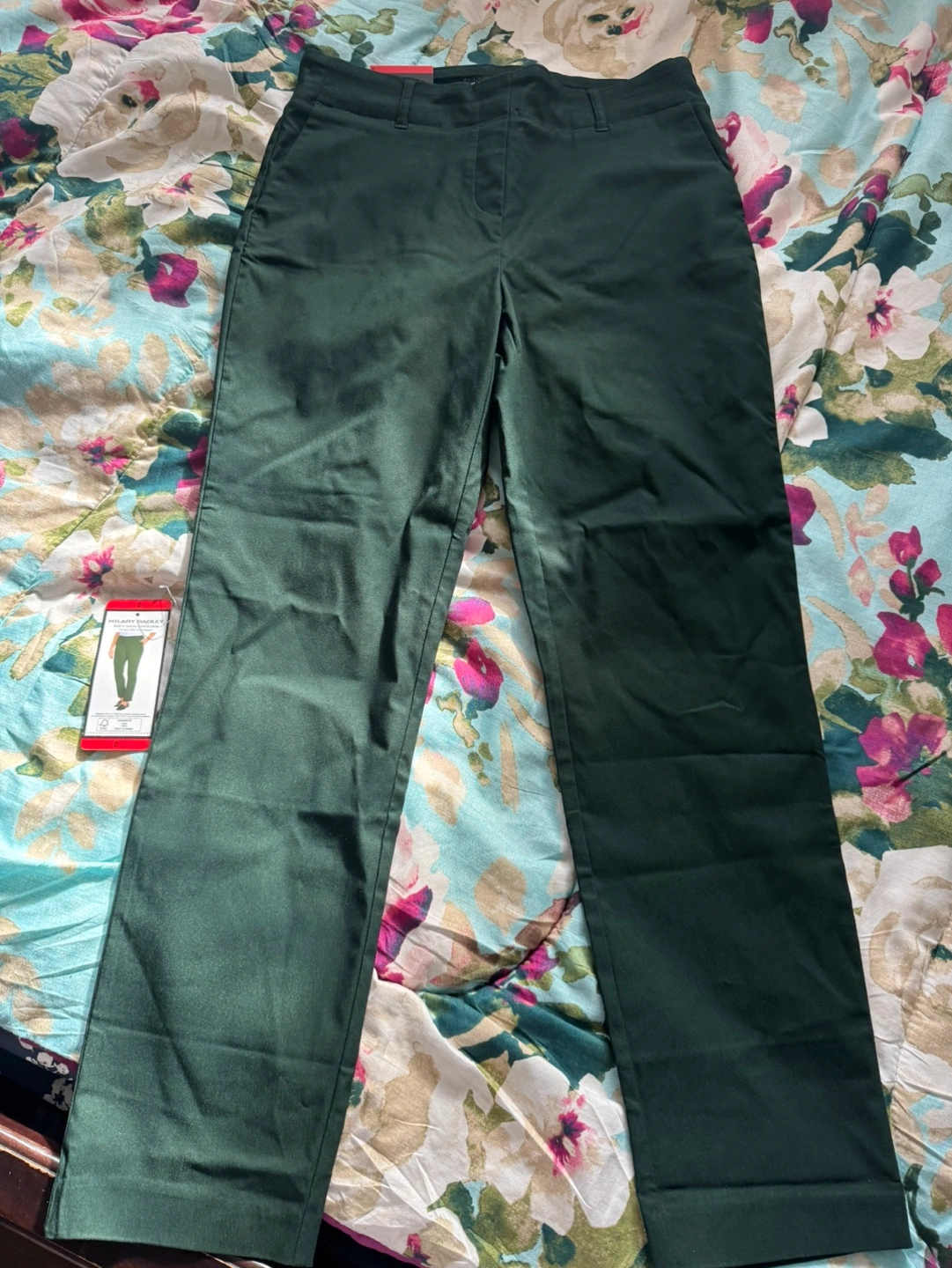 90Dark green slim leg pants. Size 8. 74 cm inseam. Built-in tummy control panel. Sits at the waist.