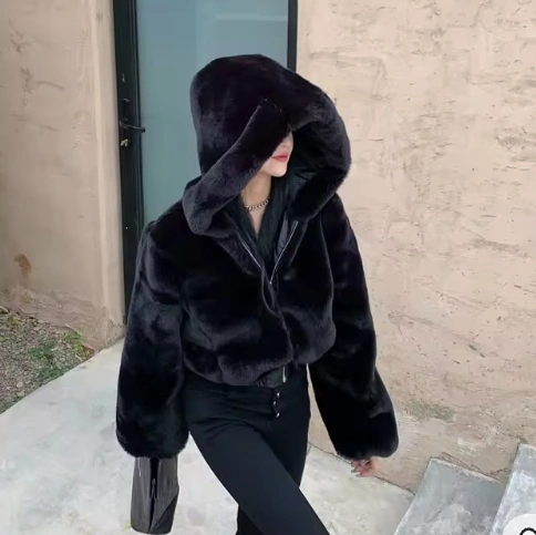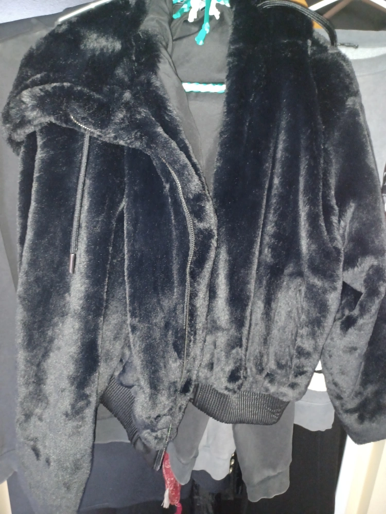 1000+ZARA Women's black faux fur jacket. Features a hood and zipper closure. Size large. excellent condition worn only once yonge and Sheppard pick up