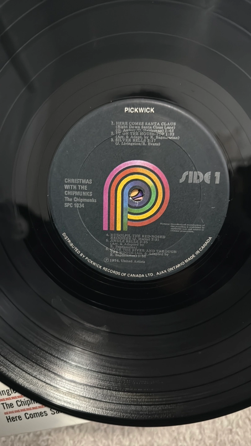 Record album featuring Alvin, Simon, Theodore. Includes classic Christmas songs. Pickwick Records Canada release.