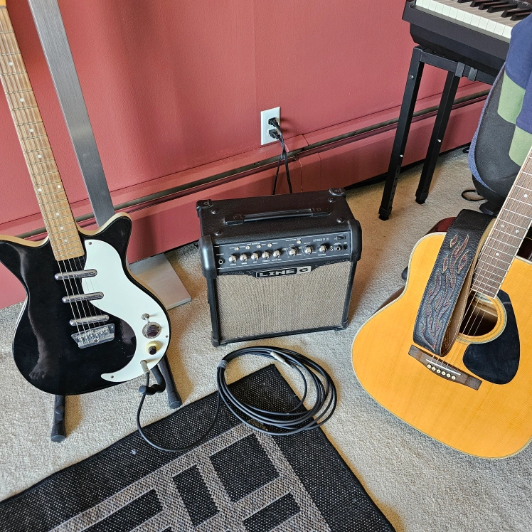 Like-new guitar amplifier that sounds much bigger! Barely used. Features multiple amp models, effects, built-in tuner, headphone output. Works great with electric or acoustic guitars. PDF manual readily available online. (Selling amp only.)