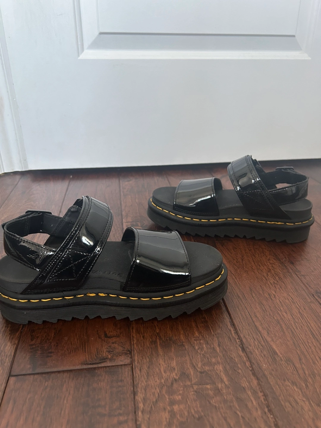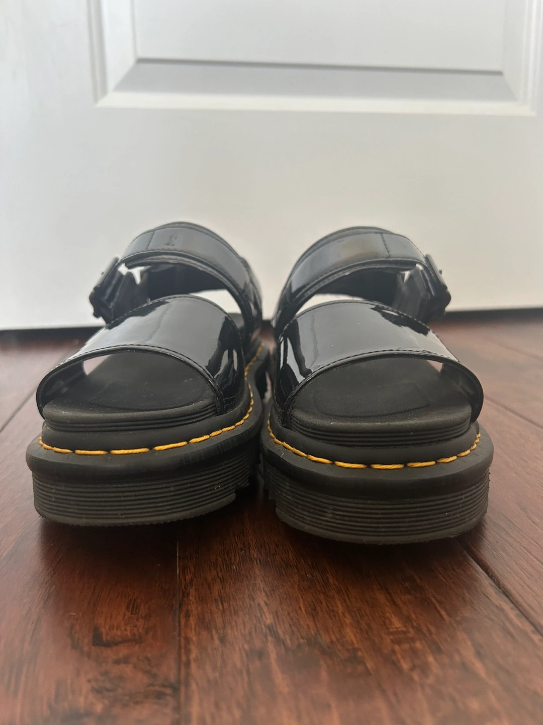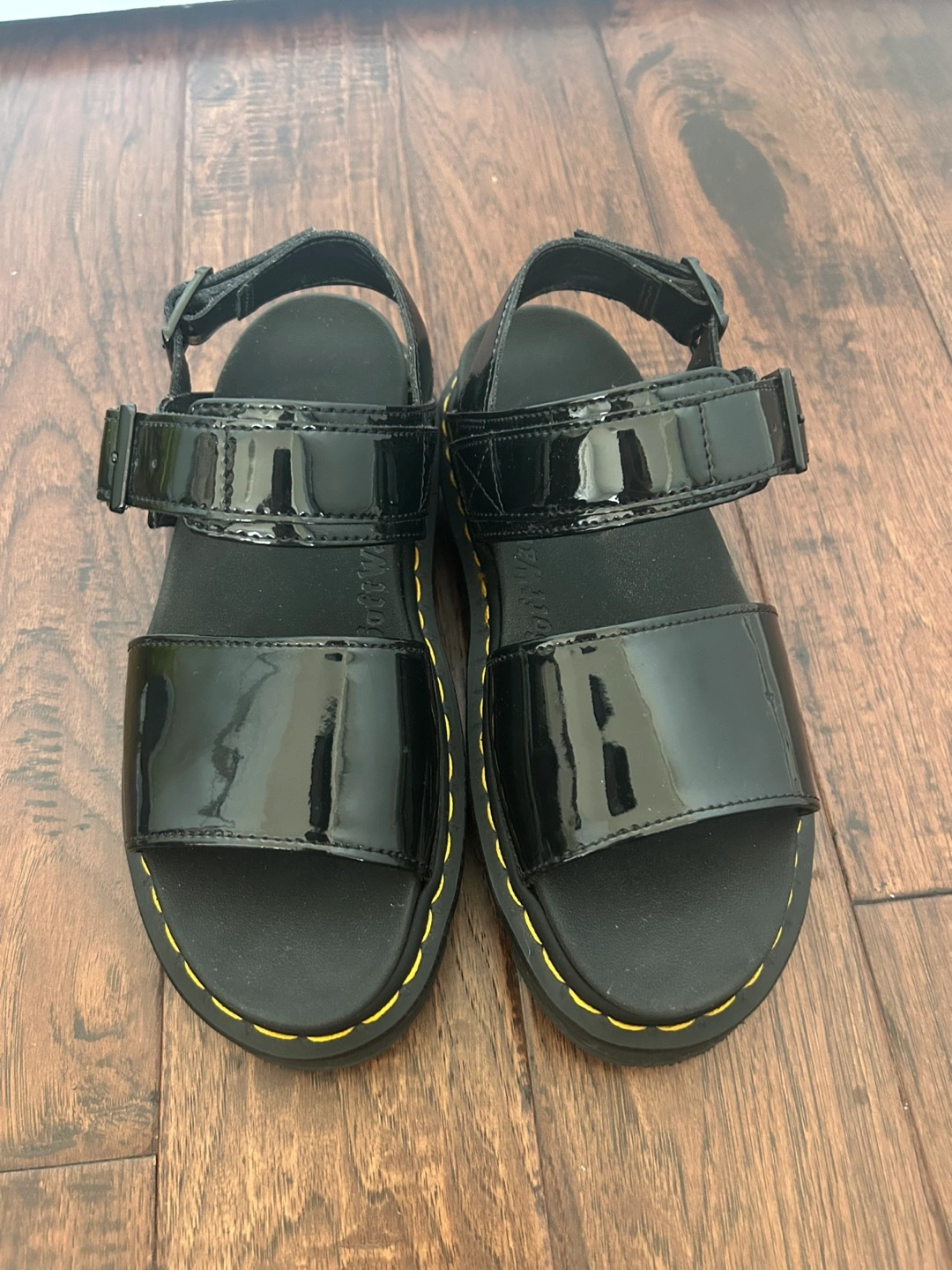 Iconic Dr. Martens Women's Voss patent leather sandals. Featuring two shiny adjustable straps to best fit you. Only worn twice - Excellent condition! :) size 37