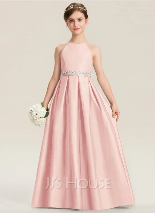 Beautiful pearl pink junior bridesmaid dress. Halter neck, A-line silhouette. Features a pleated skirt and embellished waistband. Back bow detail. Perfect for weddings or special occasions. Brand New. Bought for $120, Asking Price $60.