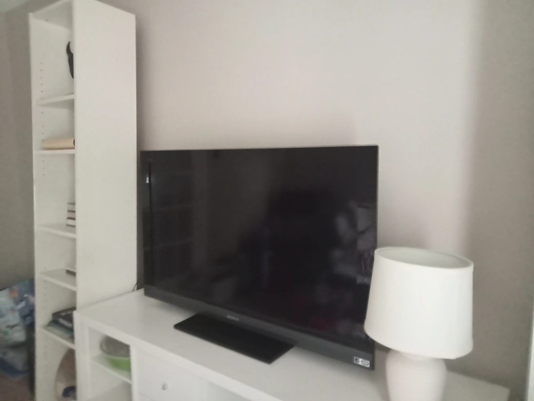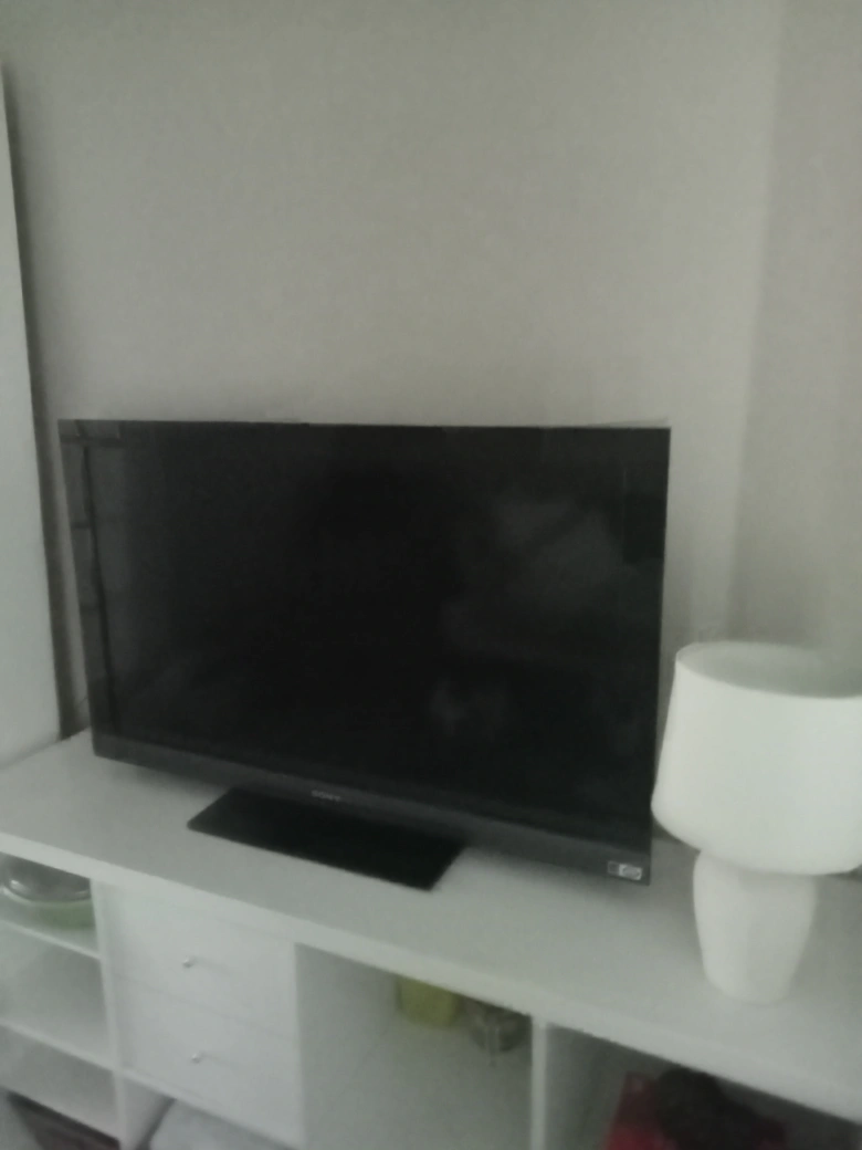 on a stand. Great for bedrooms or smaller spaces. Works perfectly. Includes power cord & handset. Gently used