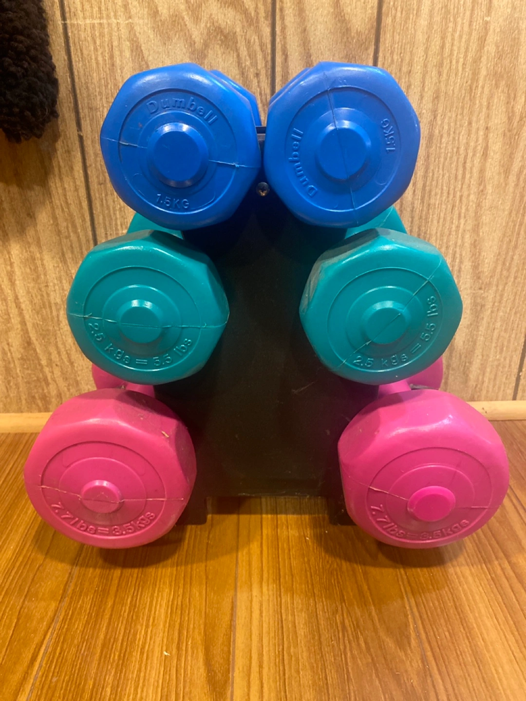 Set of six dumbbells. Two 1.5kg, two 2.5kg and two 3.5kg. Colour coded, rack included. Some minor wear. Open to trades. If the ad is visible the item is still available. Pick up only in the Kipling and Highway 7 area of Woodbridge.