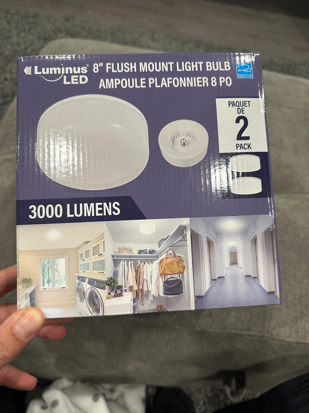 1 8-inch flush mount LED light bulbs. 3000 lumens, 4000K colour temperature. Suitable for various spaces. Energy efficient.