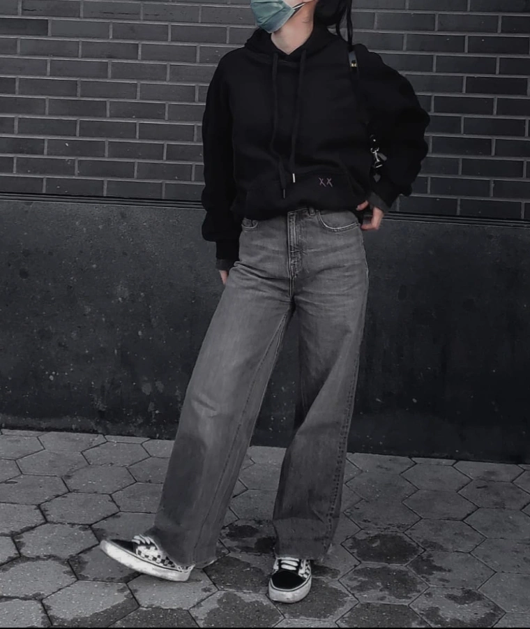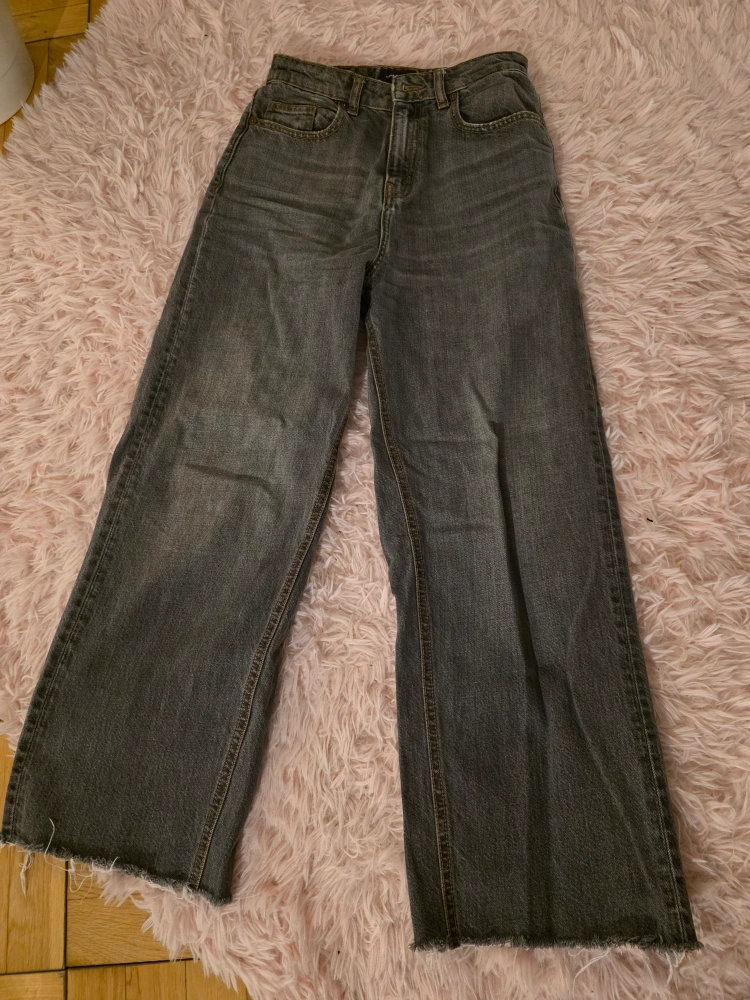 Dark gray wide leg jeans. Raw hem. Non Streching Size 26.