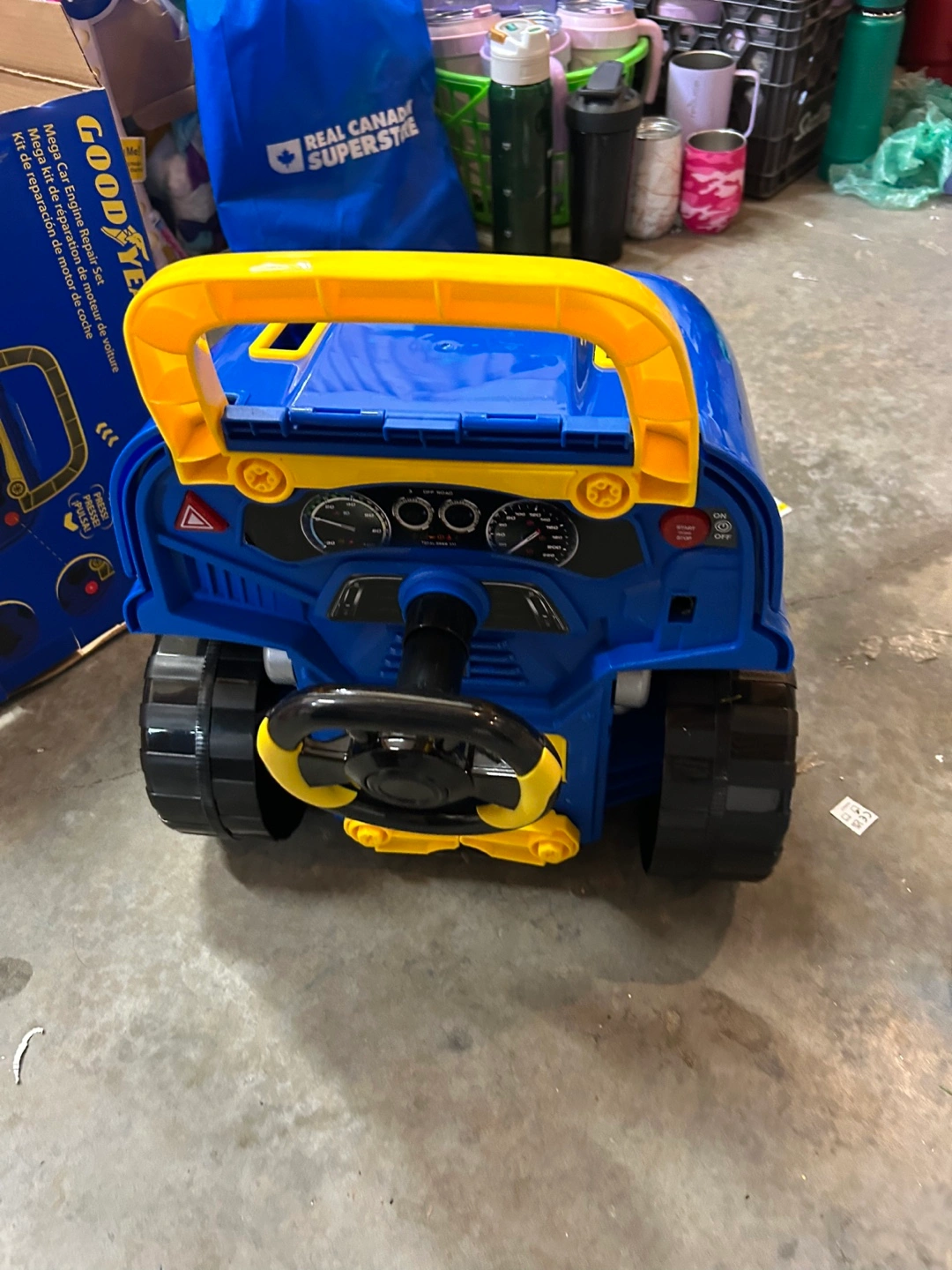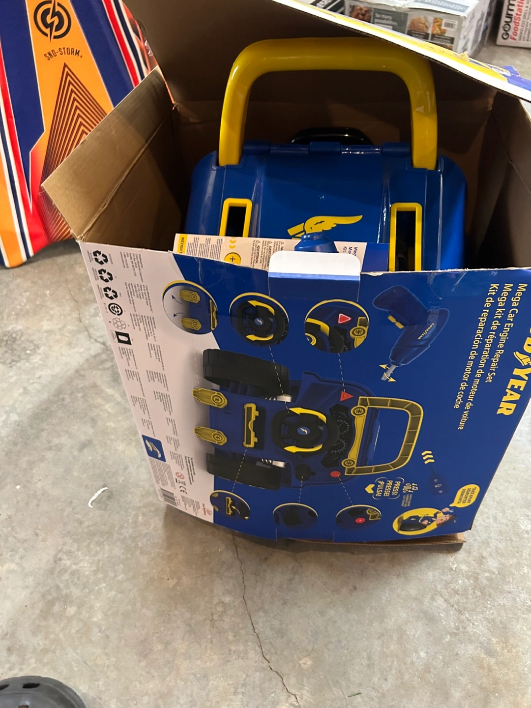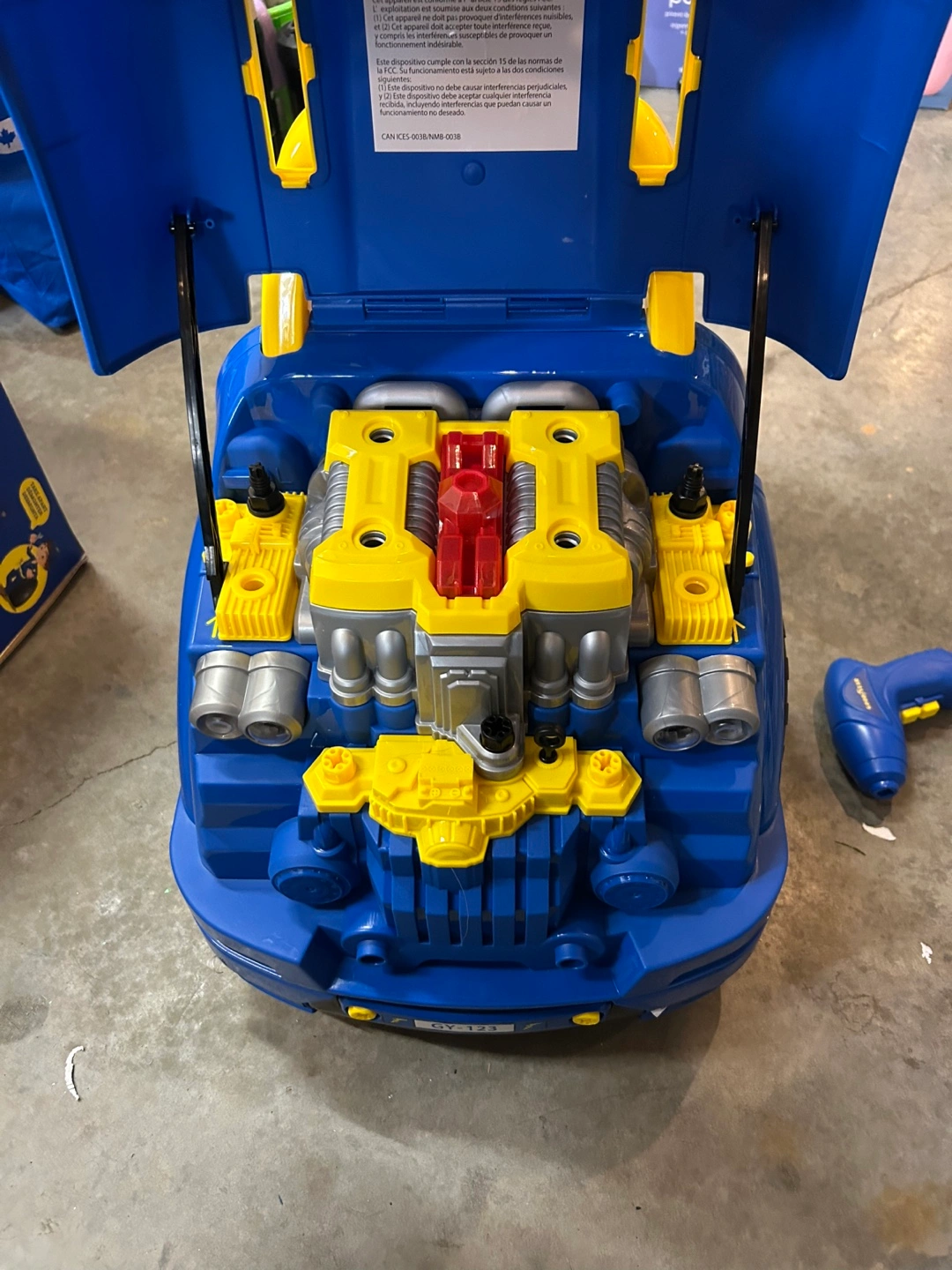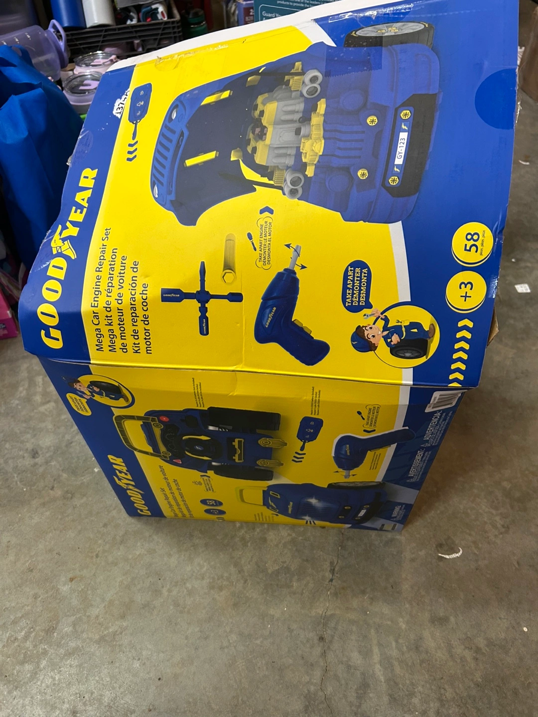 Playset includes a toy car and tools. Features working parts and realistic details. Great for imaginative play. A couple of bolts are missing and bit for drill