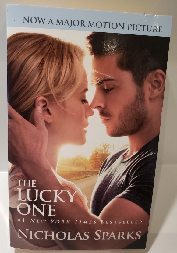 Paperback copy of Nicholas Sparks' novel, The Lucky One. #1 New York Times bestseller. Now a major motion picture. Shows some wear.