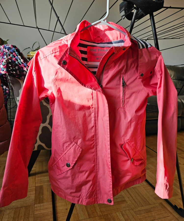 Buy & SellGirls' Pink Joe Fresh Rain Jacket - Size 7Girls' Pink Joe Fresh Rain Jacket - Size 7$5Coral pink lightweight hooded jacket. Features a striped inner lining and zipper closure. Good for spring or fall. smoke fee and Pet free Home. ConditionLike newAge6-8 years1 chats·0 favorites·11 viewsSELLERverifiedAKWoburn903 reviewsWHERE TO MEETGiant Tiger Lawrence & SGC Rd.