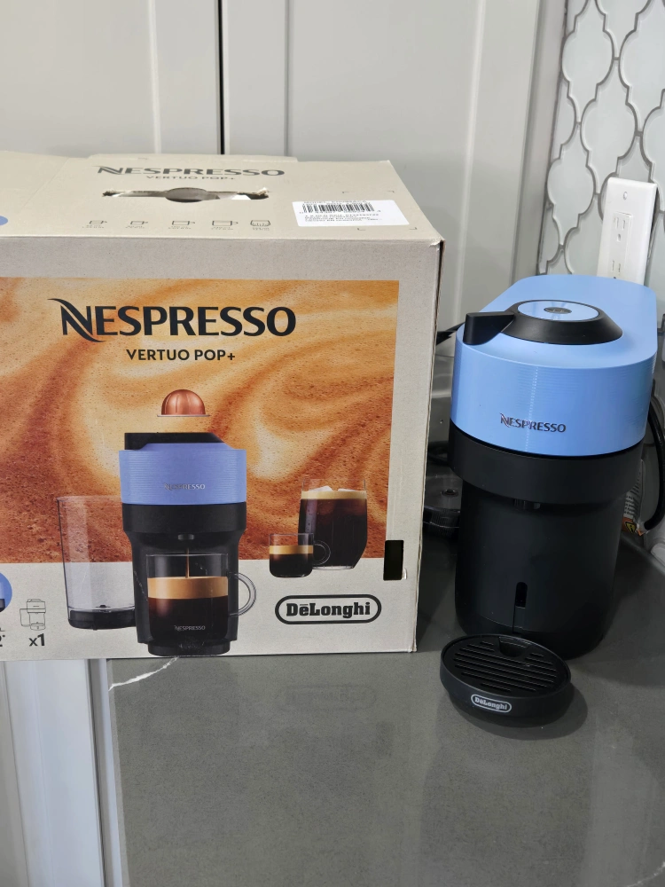 Nespresso Vertuo Pop coffee machine. Pastel blue colour. Includes original box and drip tray. DeLonghi & Breville brands.