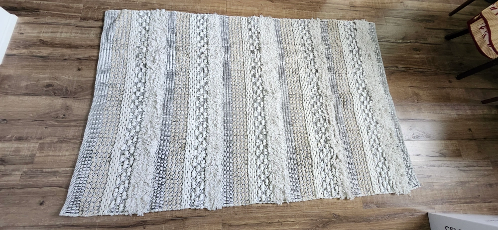41Woven tufted area rugs for sale. Larger rug measures 4 feet by 6 feet. Smaller rug is 2 feet by 3 feet. Large is $39. Smaller is $15. Take both for $50. Pick up in Thornhill.