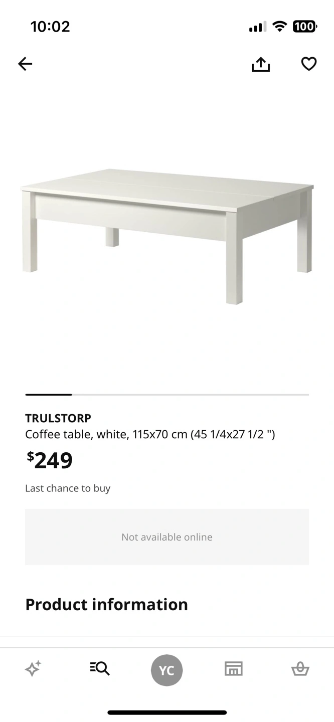 IKEA TRULLSTORP Lift-Top Coffee Table - White