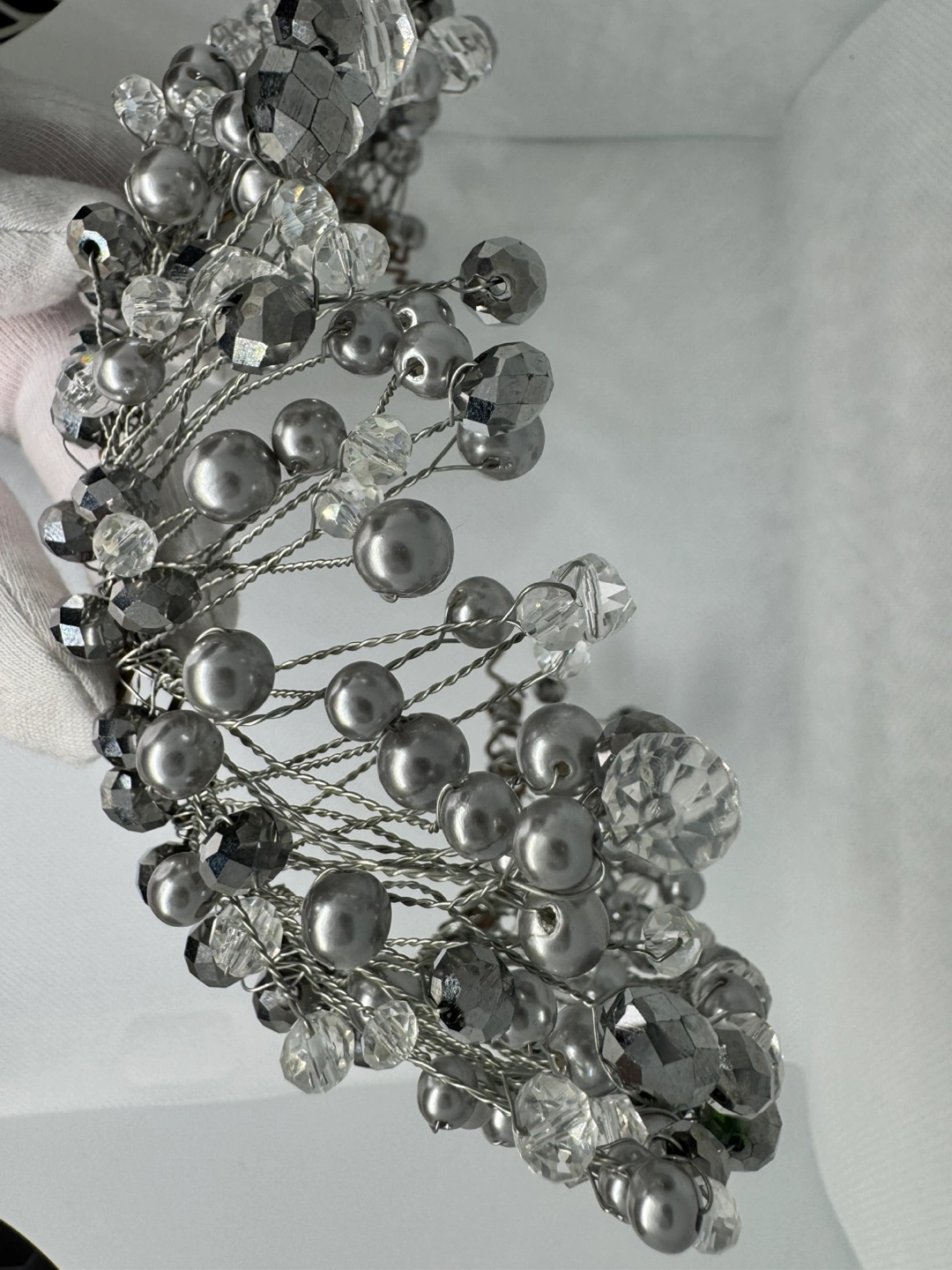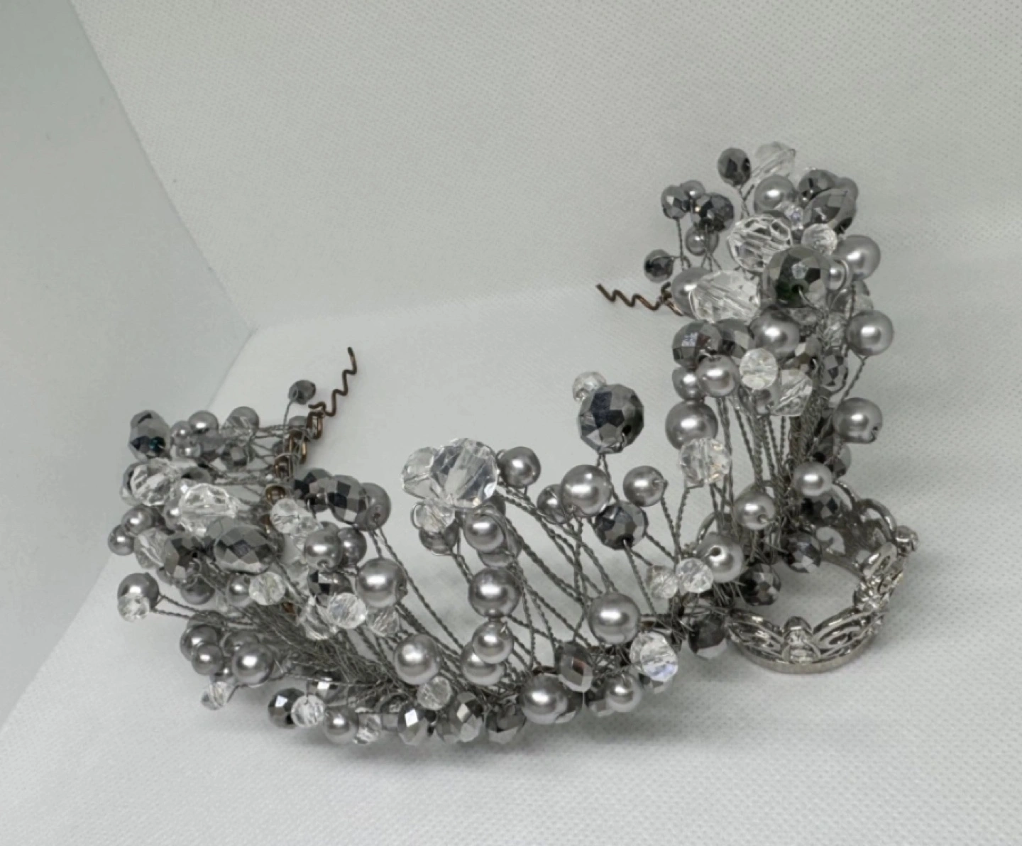 Silver Beaded Hair Crown handmade