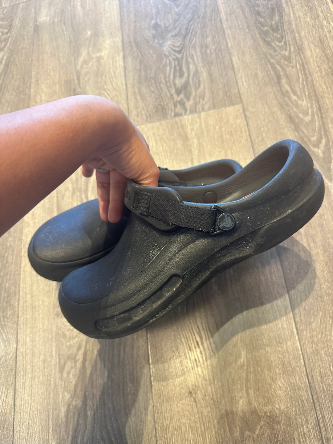 Black non slip Crocs Perfect for work which needs black shoes or casual wear No tear or breakage anywhere US size 10 Men Easy to clean and maintain